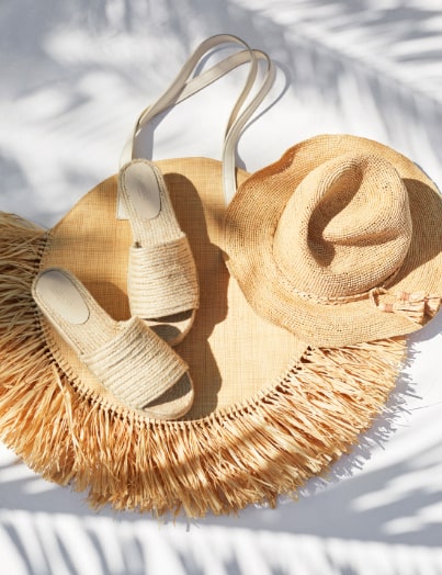 BEADED CLUTCH, LEATHER CROSSOVER ESPADRILLE.