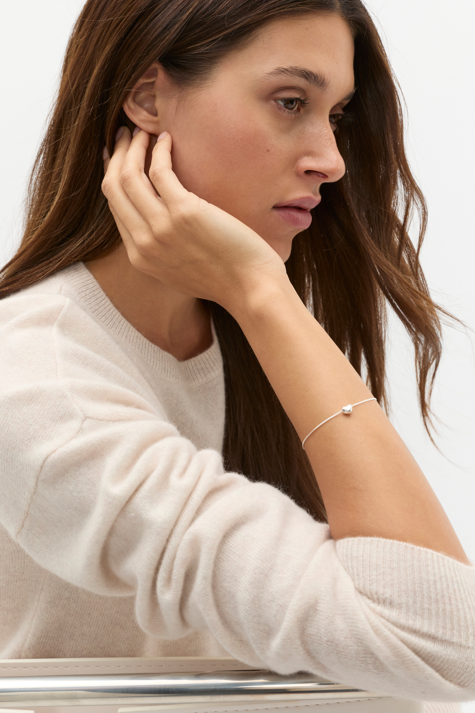 A delicate and classic design, this bracelet features a fine chain with a small heart pendant. Pair with the matching necklace or sterling silver earrings for a curated set of for the perfect gift.