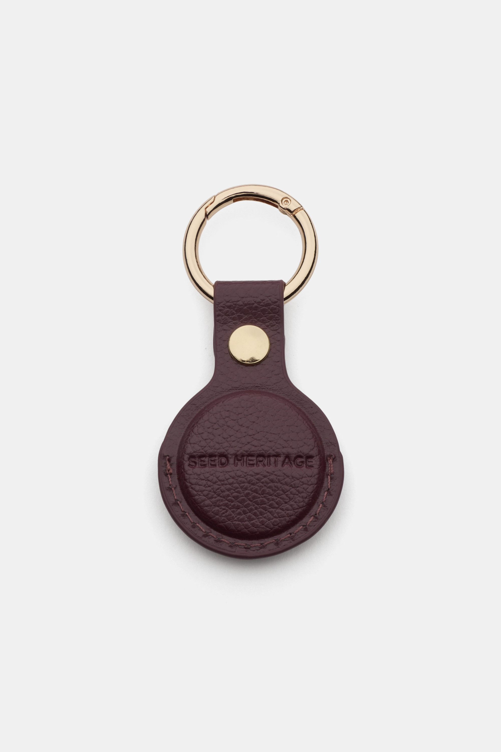 Making for a great gift, this air tag holder features a leather-look finish and a gold-look ring.