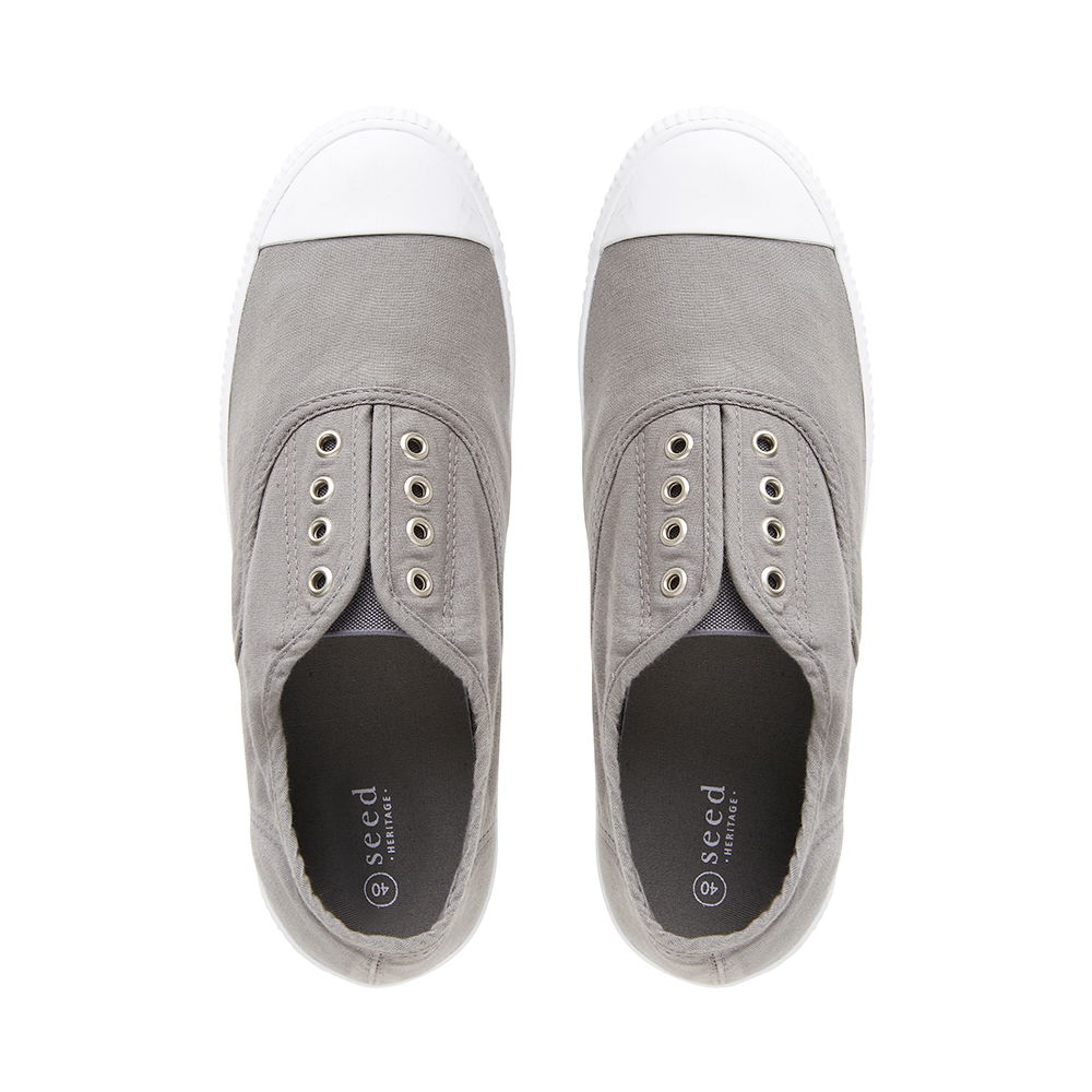 Relaxed pull on sneaker with eyelet detail. Fabric upper/Rubber sole.
