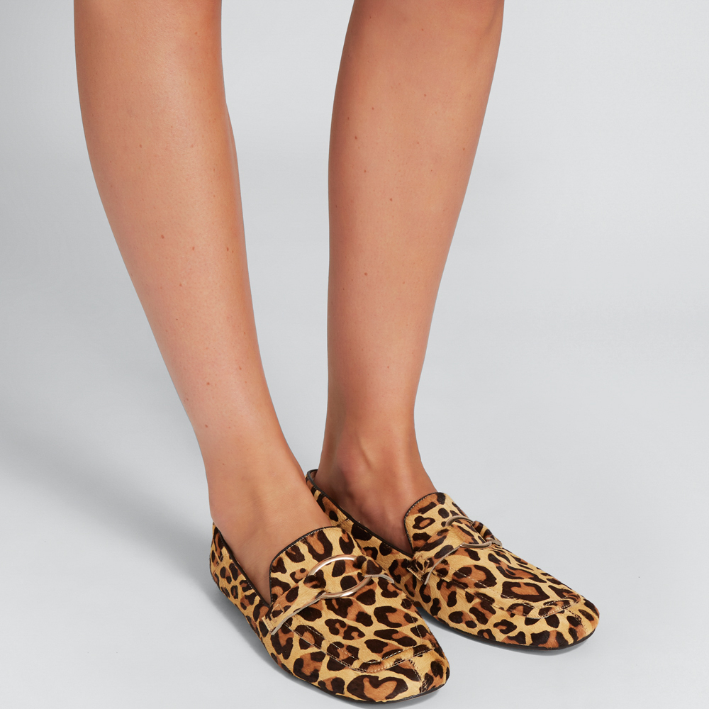 This loafer features a gold buckle detail and is the perfect partner for denim or a classic tapered pant. Made with a leather upper and a manmade sole, it is available in Snake and Ocelot and in sizes 36 to 41.
