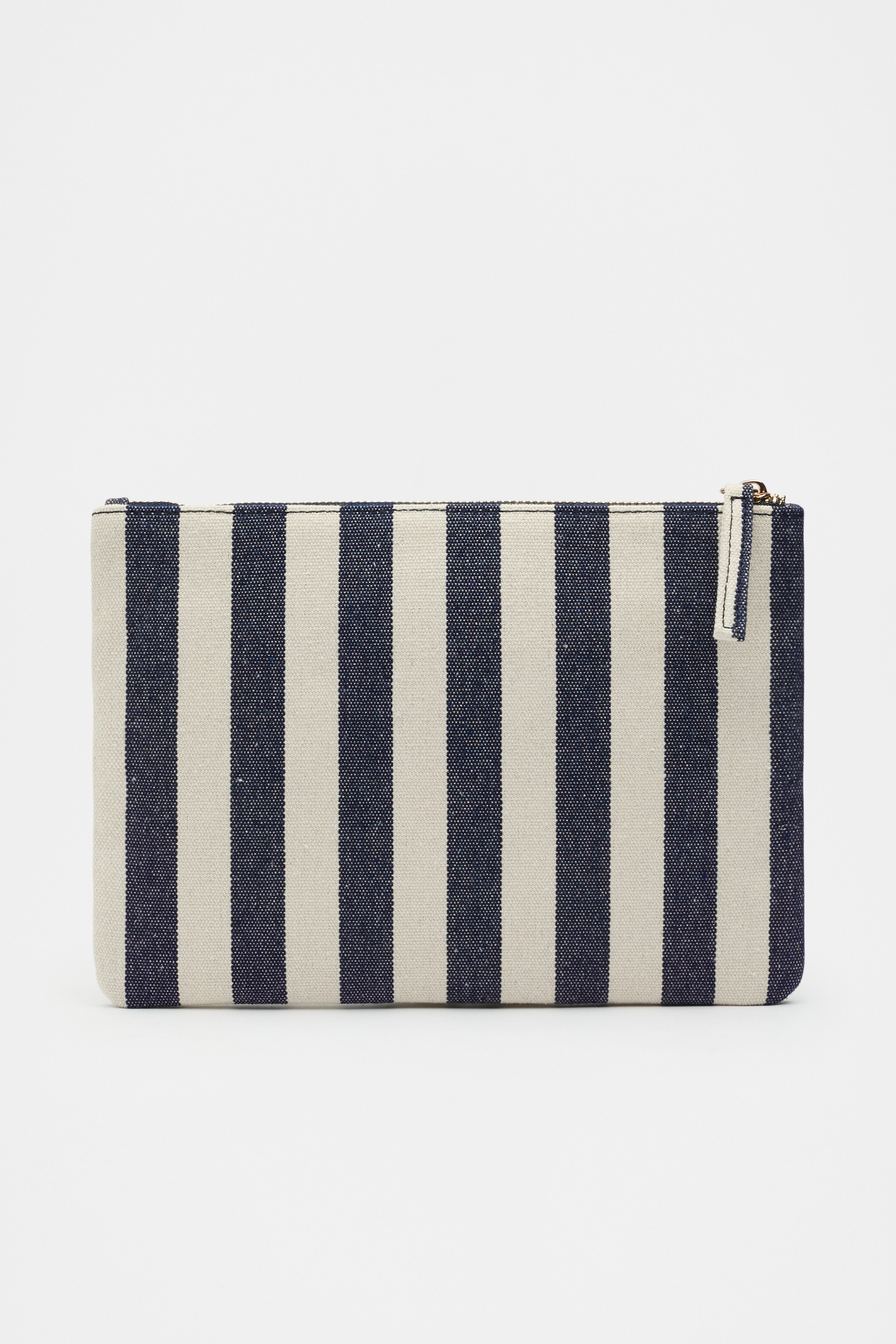 Chic and practical, this pouch is a classic design. Crafted in a soft cotton blend, it features a top zip closure and an internal zip pocket. It's detailed with a classic stripe design and a Seed Heritage anniversary leather patch.