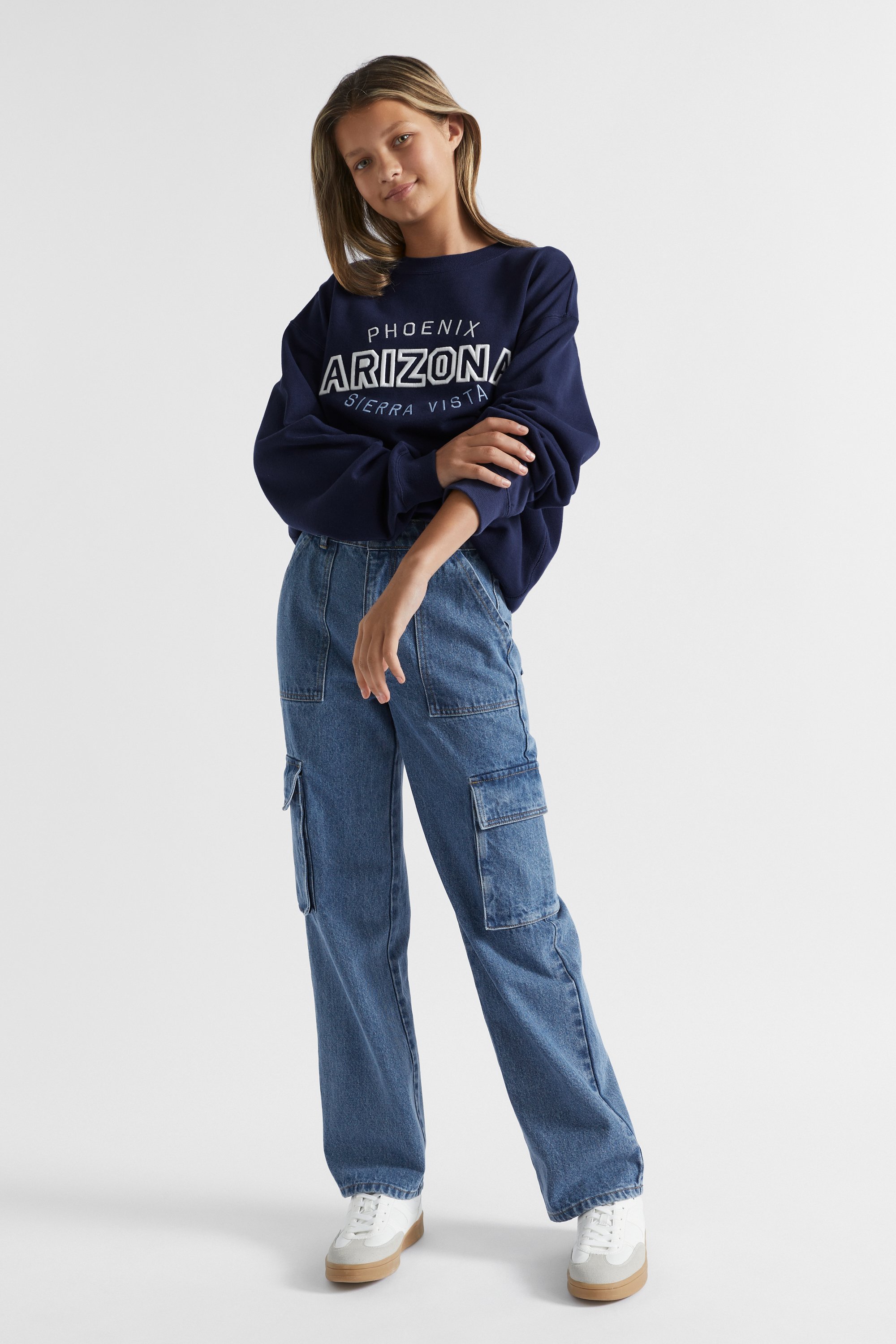 Crafted from comfortable cotton, this slogan sweater features a round neck, dropped shoulders, long sleeves, ribbed trims, and an embroidered Arizona motif.