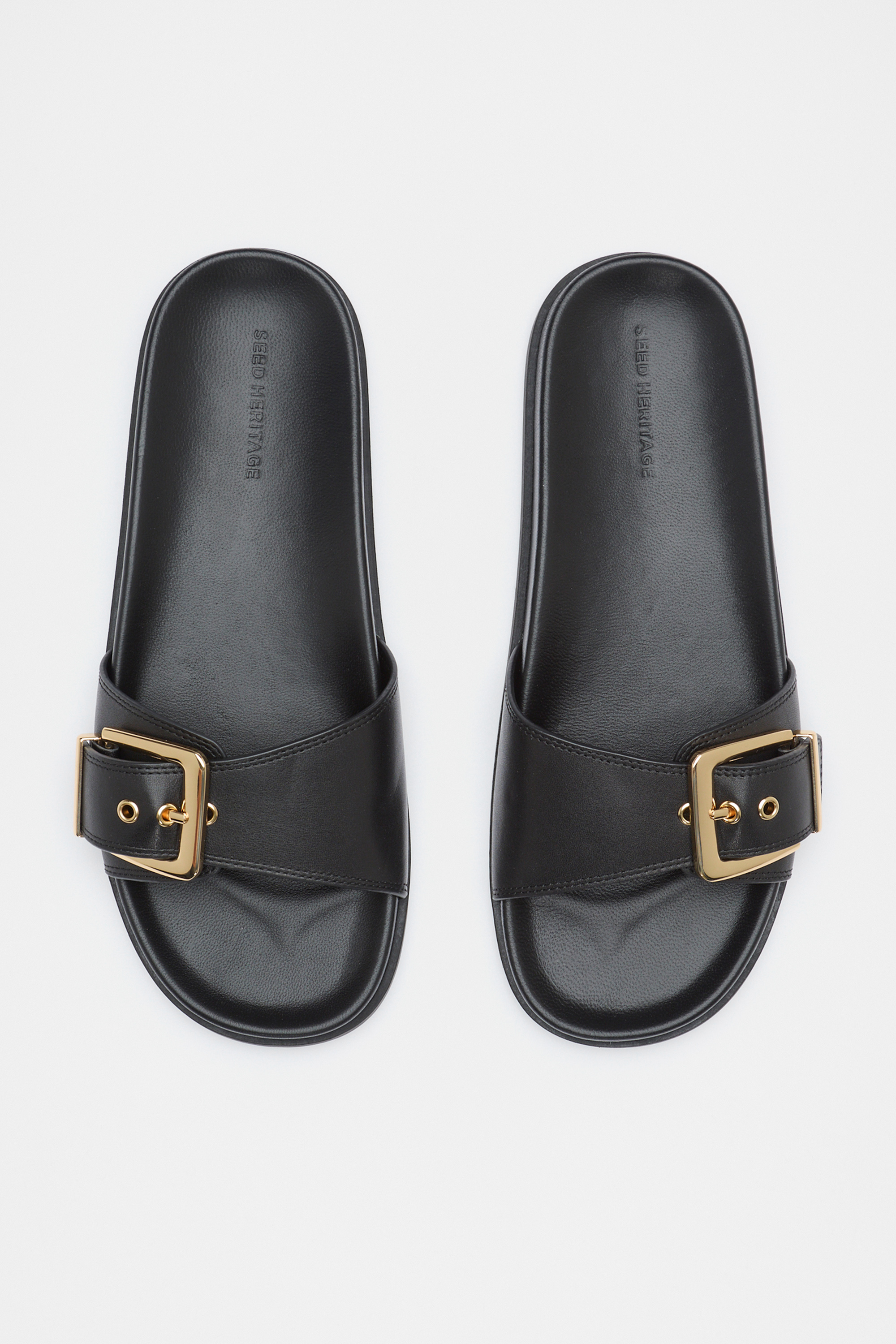 Elevated in their simplicity, these slides are a comfortably chic pair to complete your look. They're a slip-on style and feature a gold-tone buckle detail. As a proud member of Leather Working Group, Seed supports their mission of greater transparency and continuous improvement, helping to create more responsible leather production. For more information, please visit Leather Working Group.