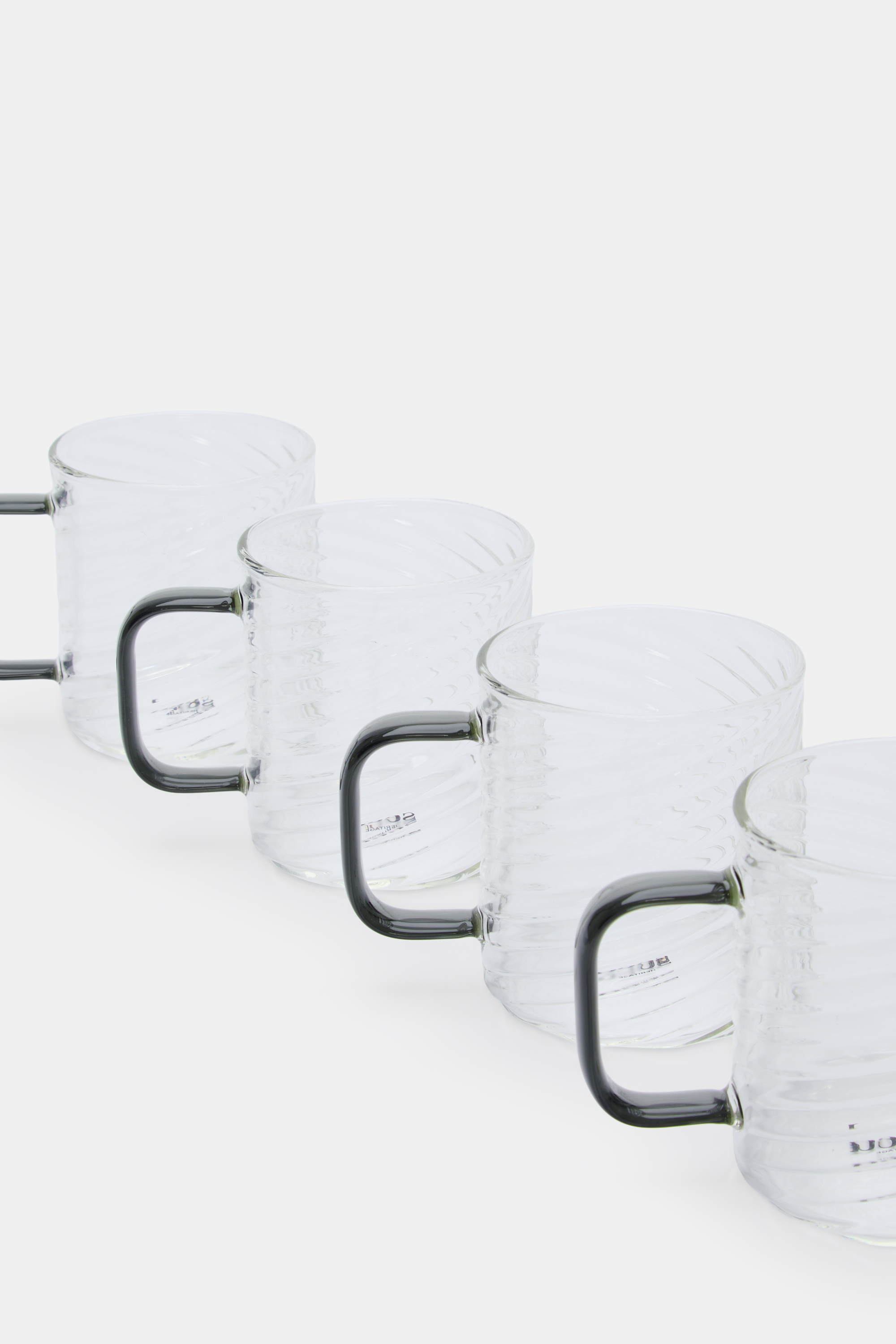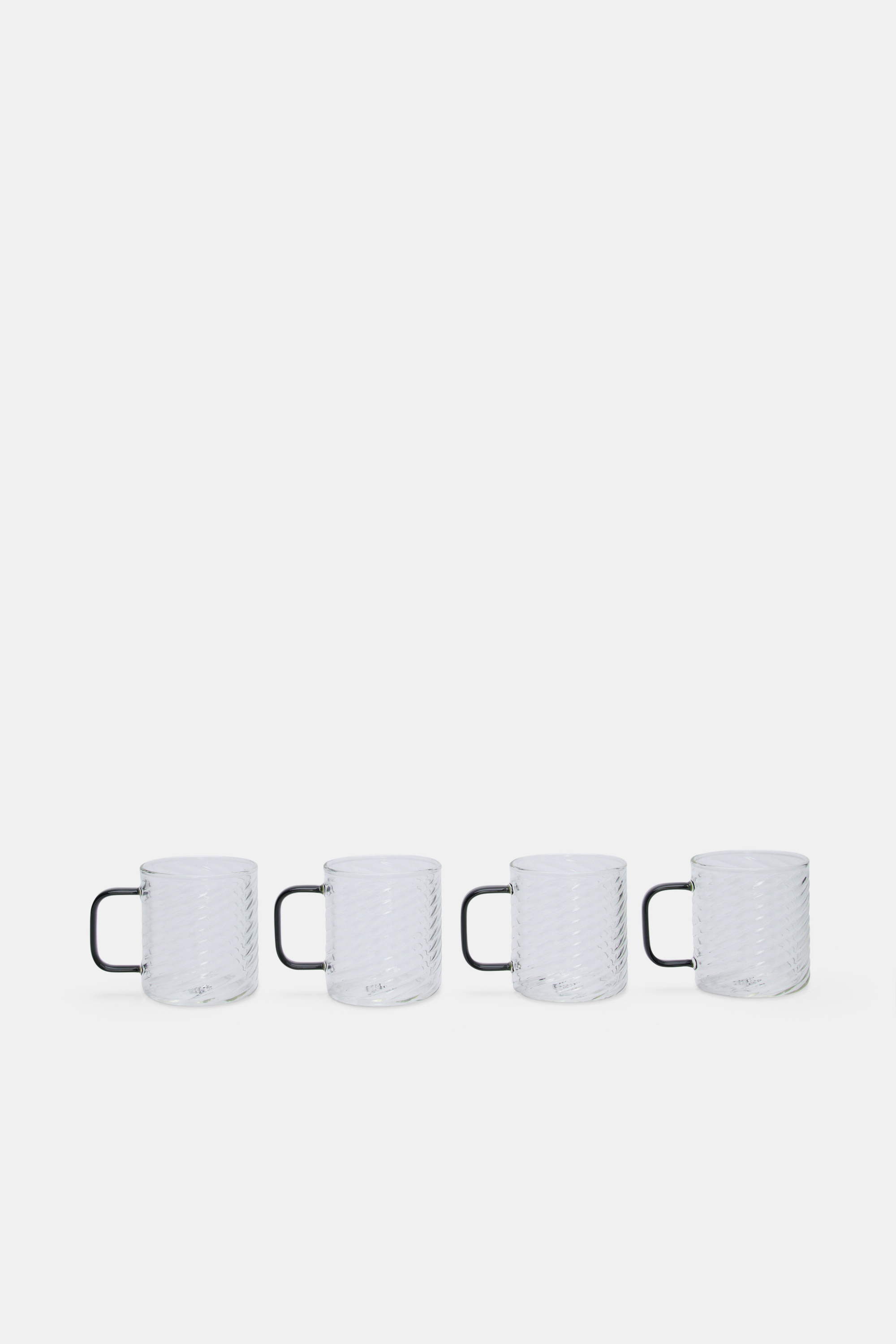 A modern design with a ripple detail, these glass mugs come in a set of four, perfect to complete your table setting.