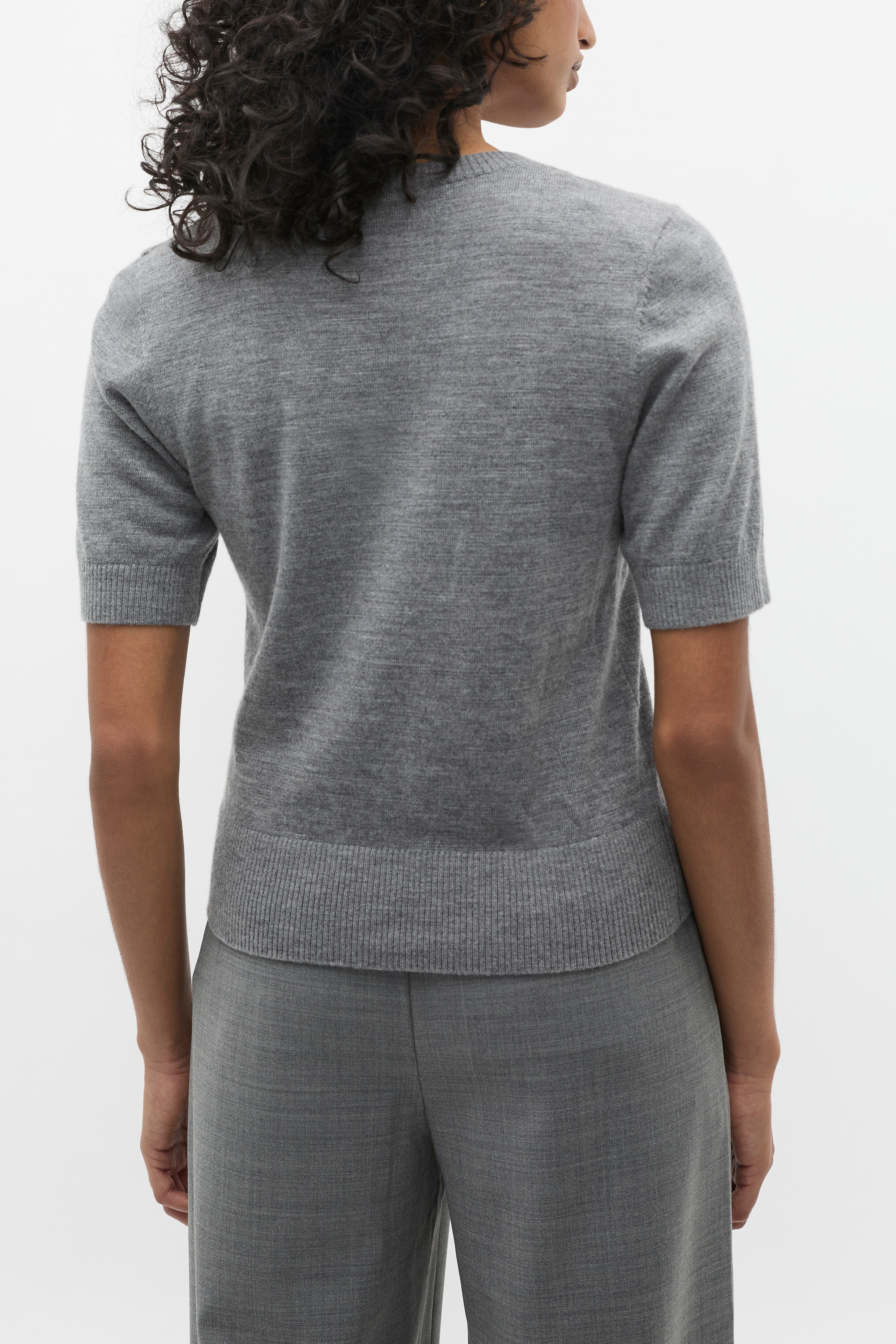 An essential in luxe Merino wool, this crew neck tee elevates a classic style and is set to be a new wardrobe staple. It features a round neck, short sleeves and ribbed trims.