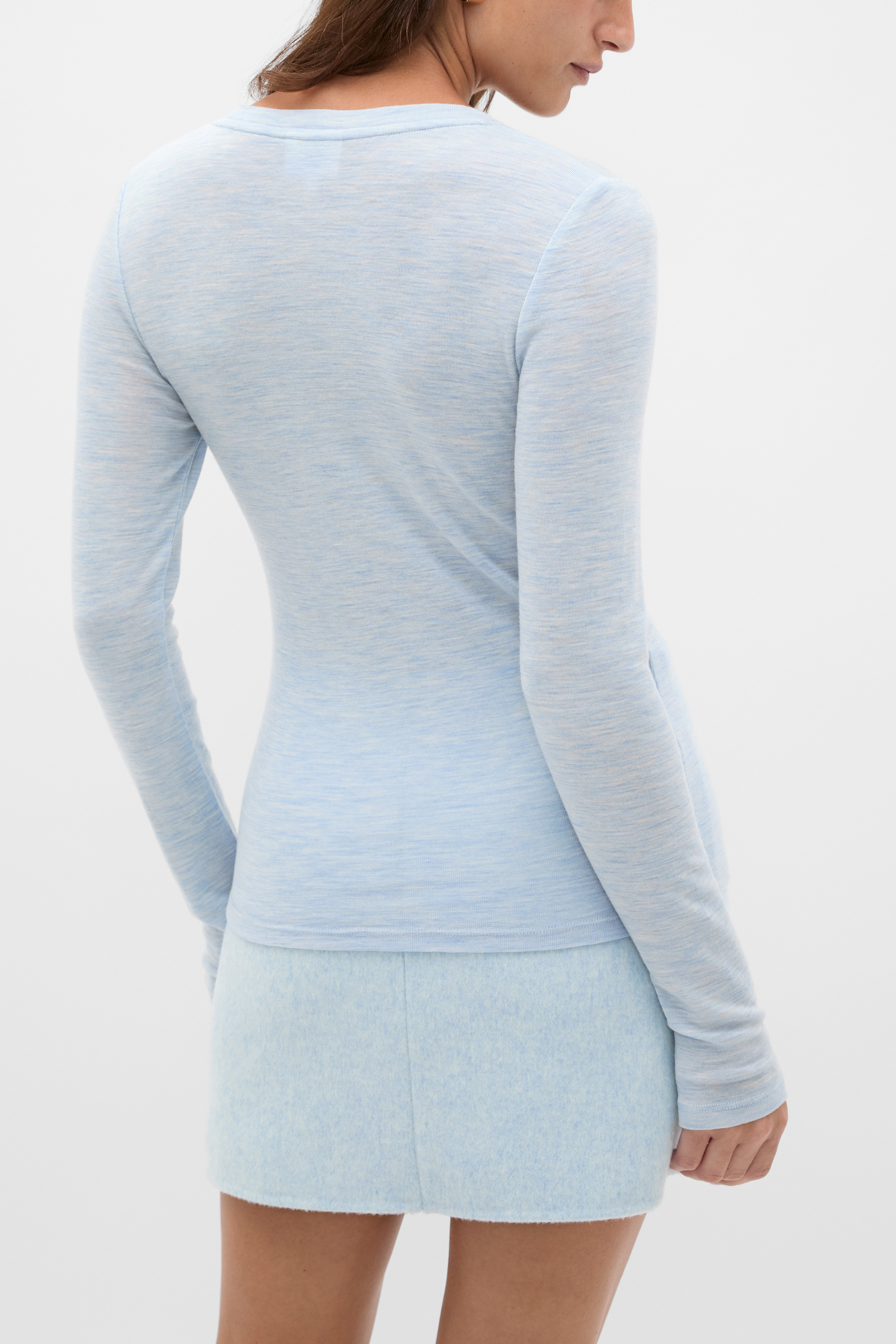 Round out your new season wardrobe with this classic long sleeve design. Perfect for layering, it's crafted in premium Australian Merino wool and features a scoop neck, long sleeves and a neat fit through the body.