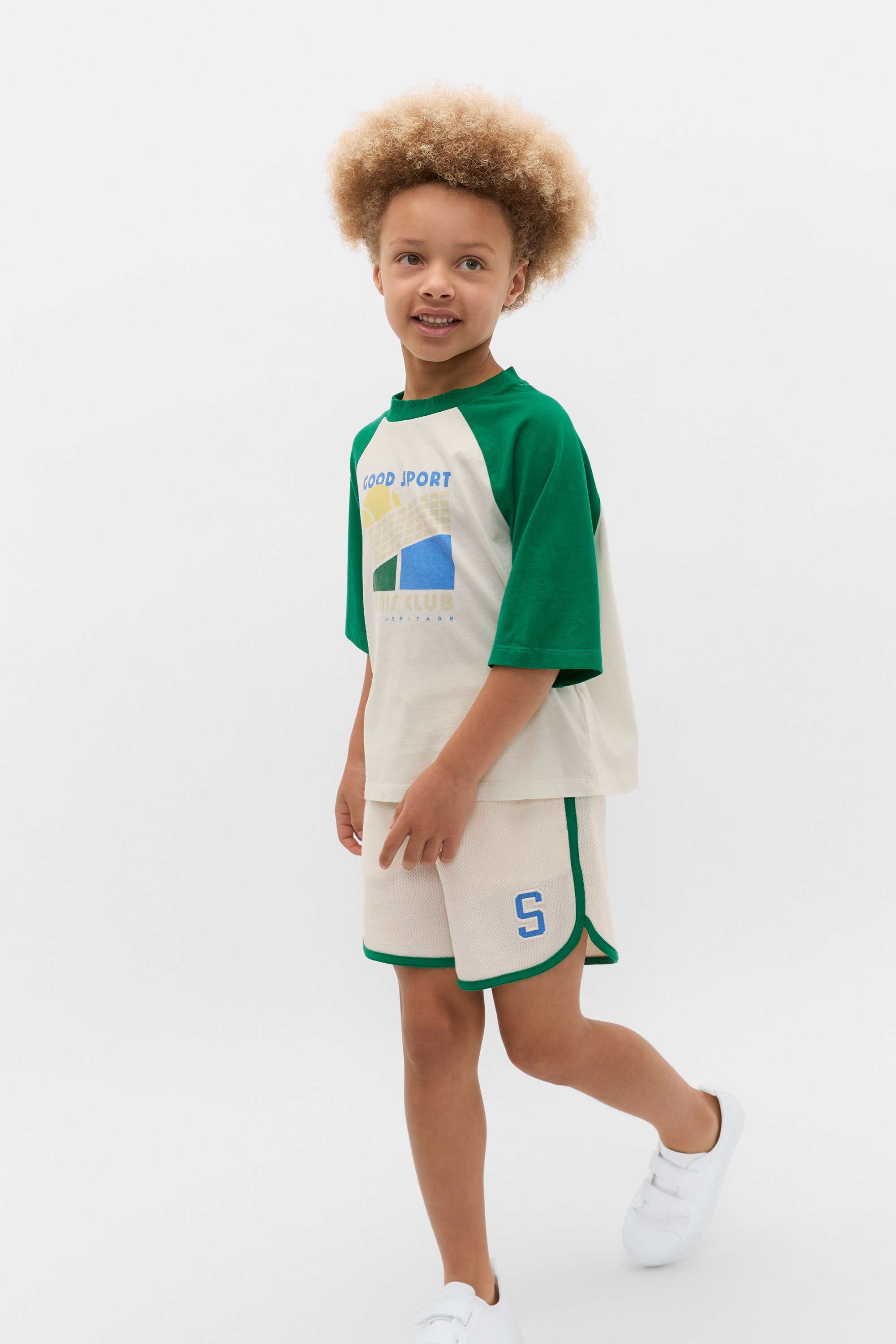 Made for running and jumping, these shorts are a classic sporty style. Crafted in premium cotton, they feature an elasticated waistband with a drawstring, pockets, a trim detail and an embroidered S patch. Pair with the matching polo to complete his sporty set.