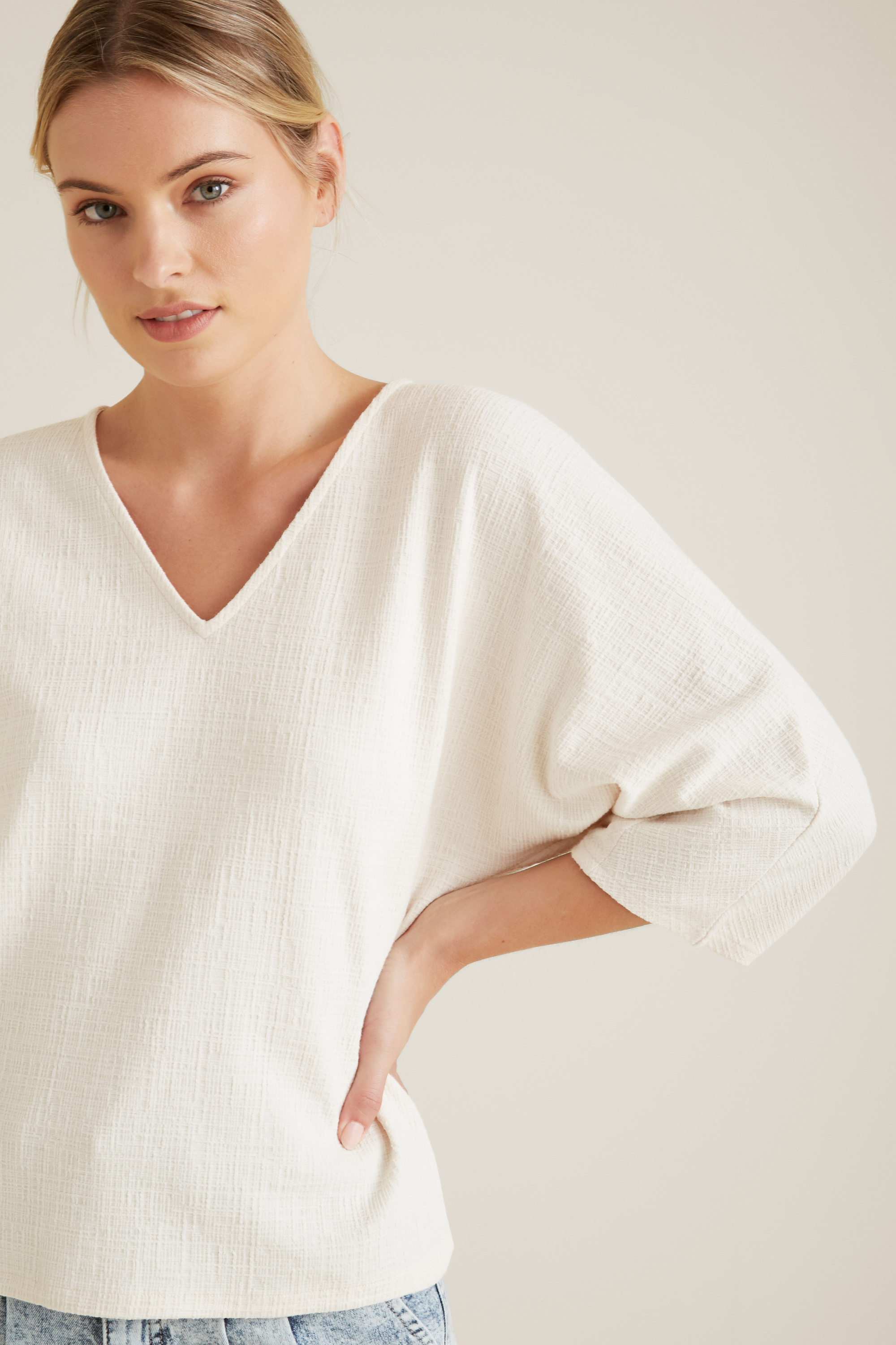 Offering a sartorially designed silhouette, this Balloon Sleeve Top is detailed with a V neckline, billowing sleeves, and a free-flowing body. For your reference, our model is 177 cm tall and wears a size 8. Check the label inside of the garment for care instructions.