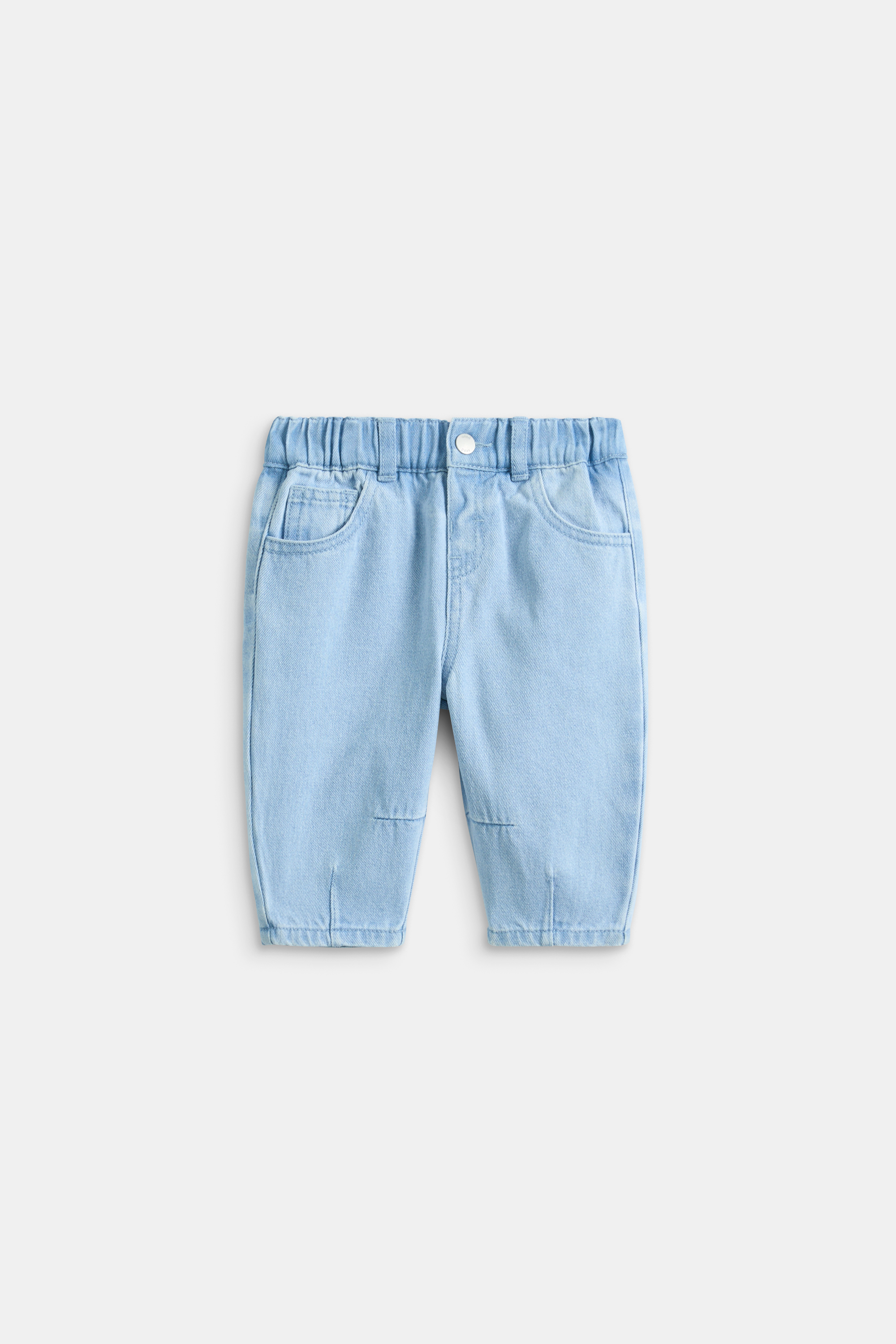 His everyday wardrobe gets an adorably stylish upgrade with these barrel leg jeans. Crafted in a cotton blend in a lightweight denim, they feature an elasticated waistband with a button detail, and pockets.