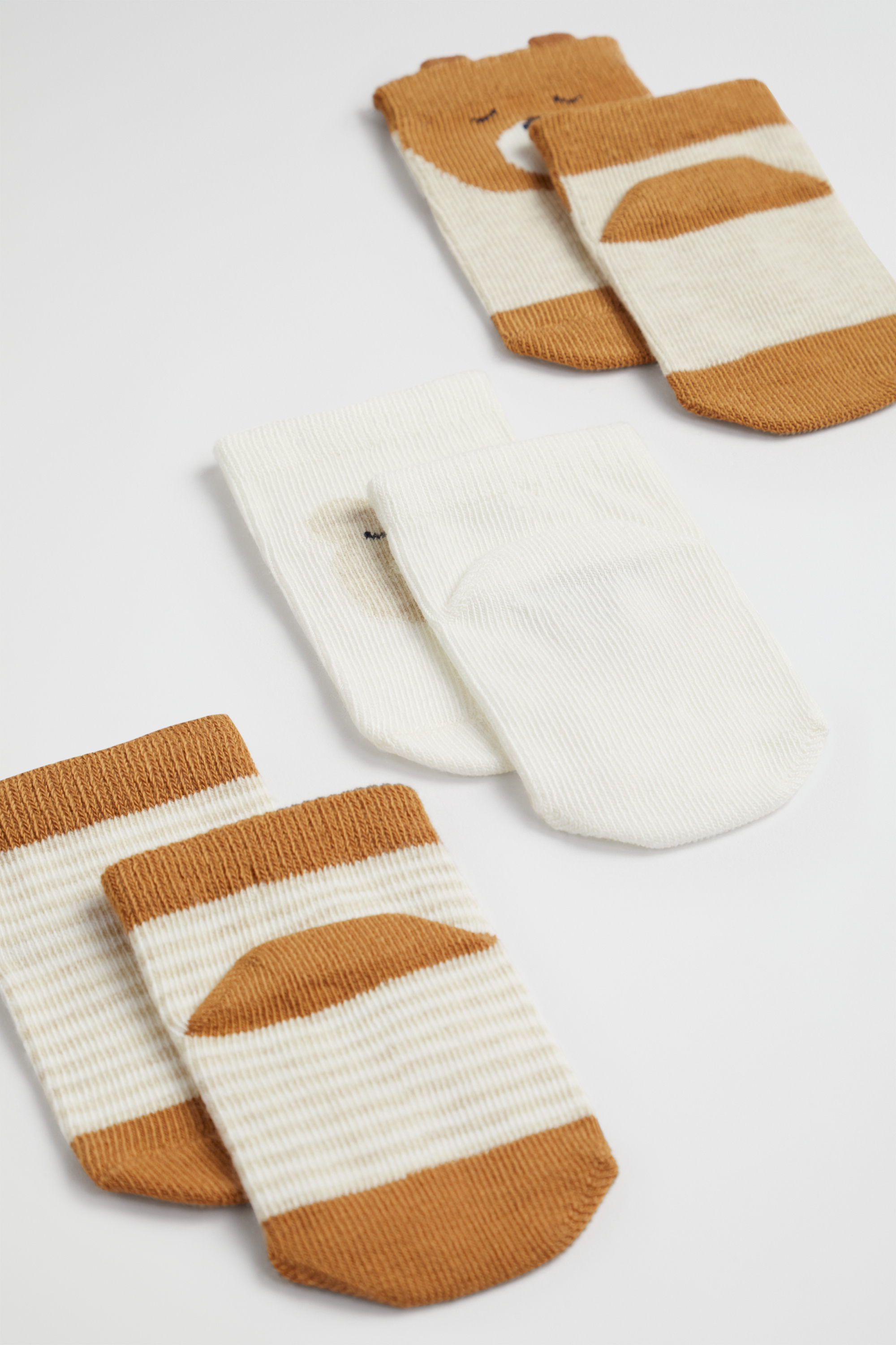This handy three-pack of socks comes with a range of designs. Two pairs feature a cute bear motif, while one has a classic stripe pattern. Made from a comfortable stretch cotton blend.
