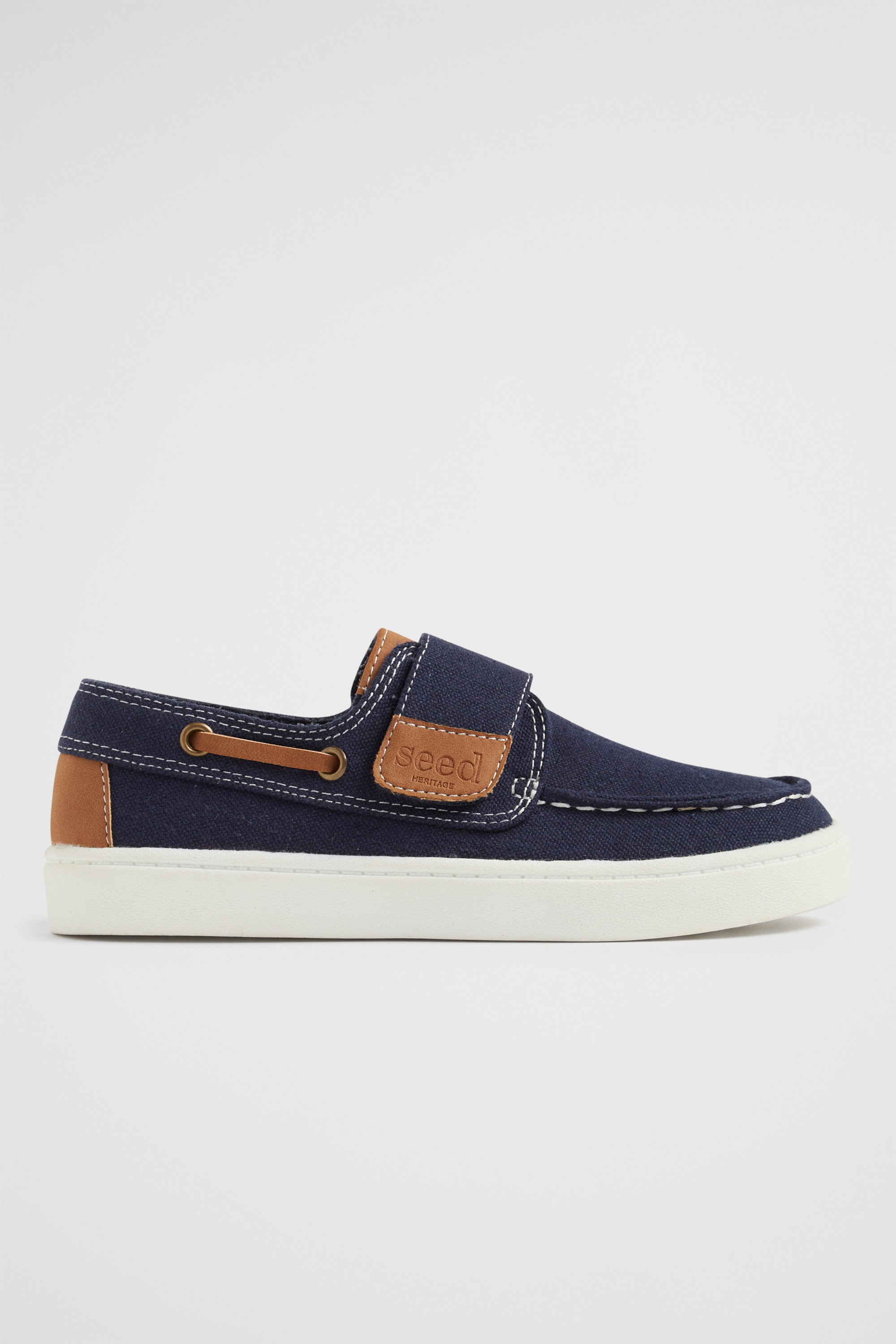 The perfect shoe for any occasion, these canvas boat shoes have a classic look. Made with a comfortable rubber sole, the shoes are finished with contrast stitching. The shoes close with a hook and loop fastening for a secure fit, all day.