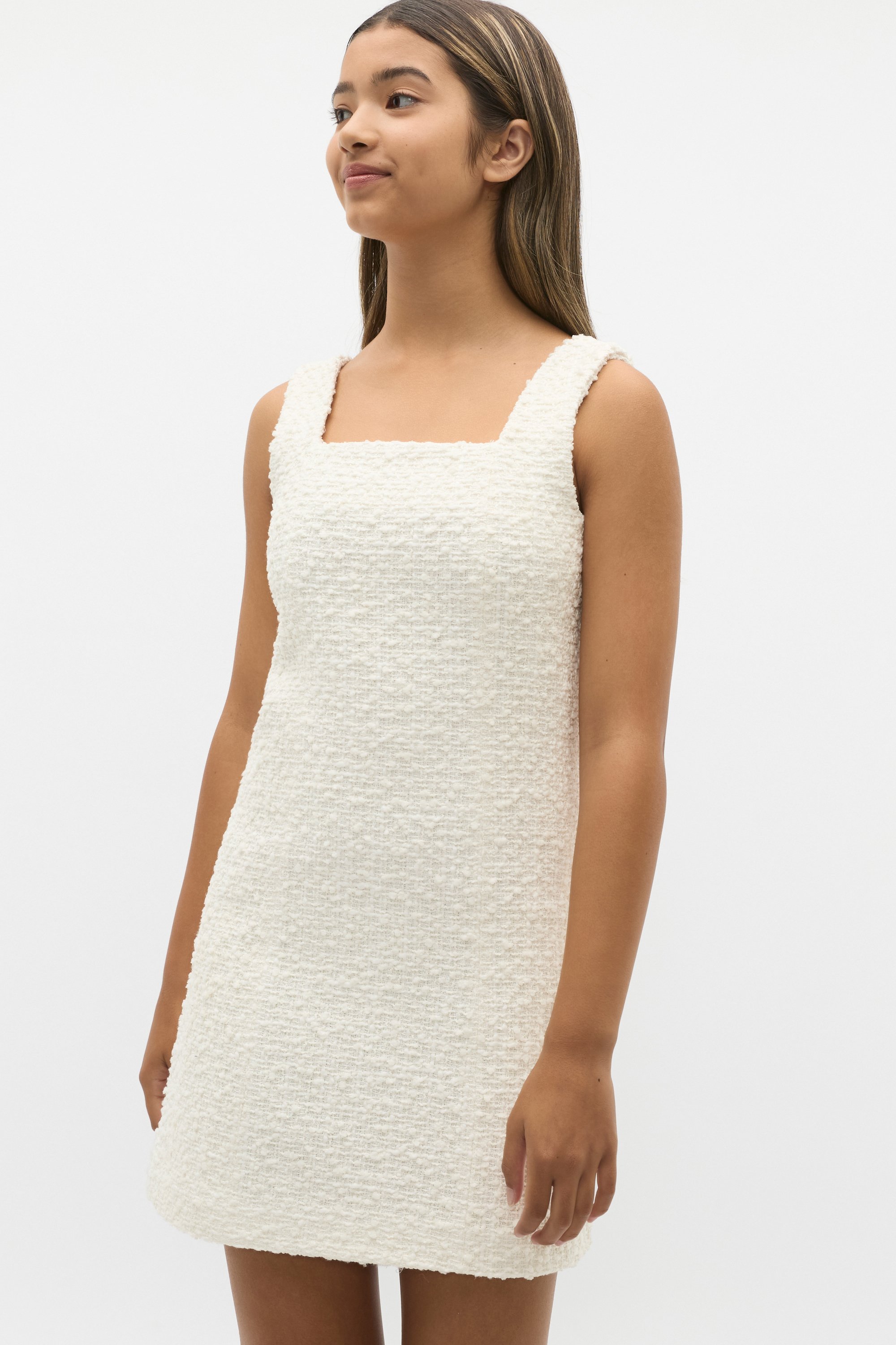 Sophisticated and chic with a fashion-forward silhouette, this dress is ready for her new-season cool. Crafted in a cotton blend and finished with a textured boucle, it has a square neckline, a sleeveless design and a panelled shape. It secures with an invisible zip at the back.