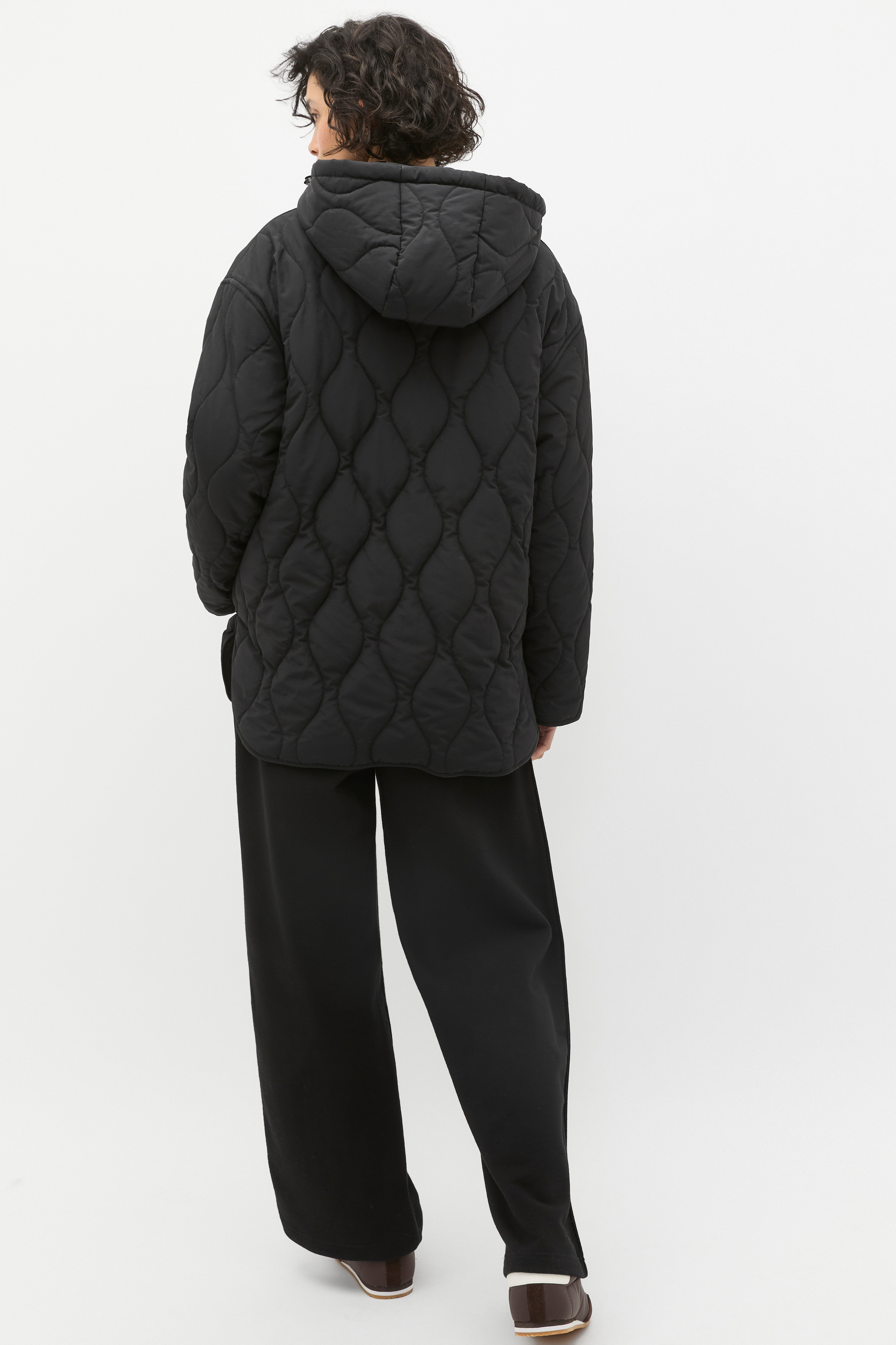Ready for the cool change, this jacket adds a little luxury to your wet weather wardrobe. With a boxy fit, it features a hood, drop sleeves, a zip front with a button-up panel, angled pockets and a quilted finish.