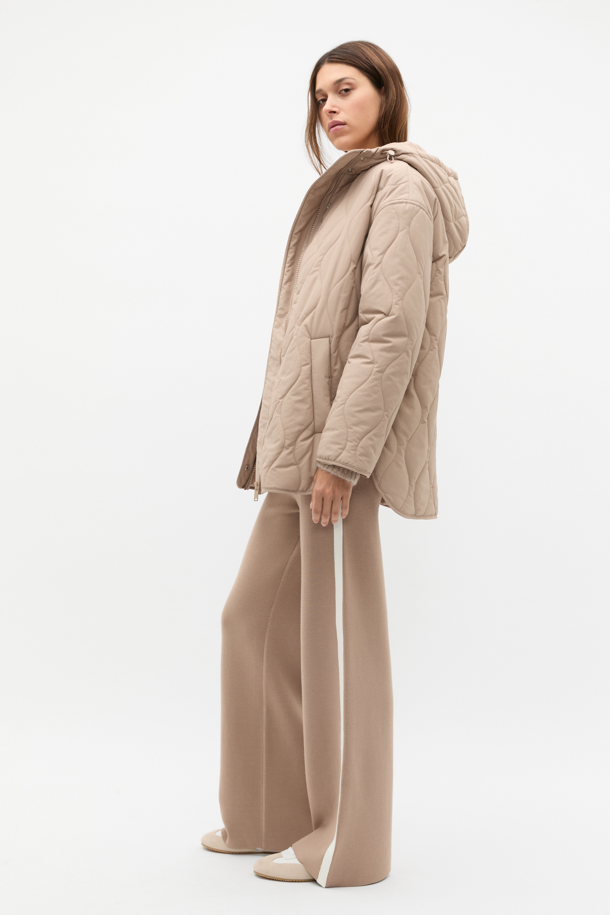 Ready for the cool change, this jacket adds a little luxury to your wet weather wardrobe. With a boxy fit, it features a hood, drop sleeves, a zip front with a button-up panel, angled pockets and a quilted finish.