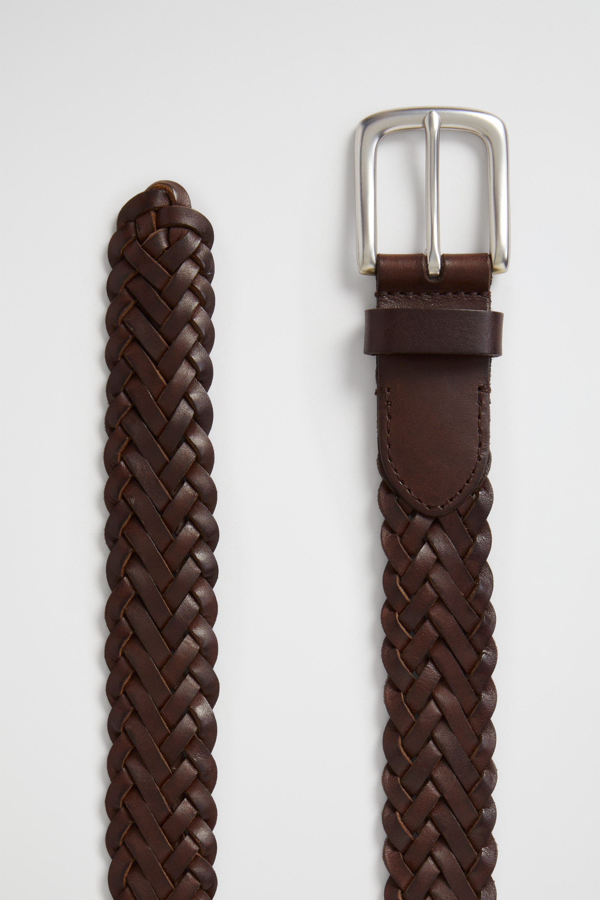 Crafted from premium leather, this braided belt is an essential styling piece. It features a silver buckle and is available in three sizes.