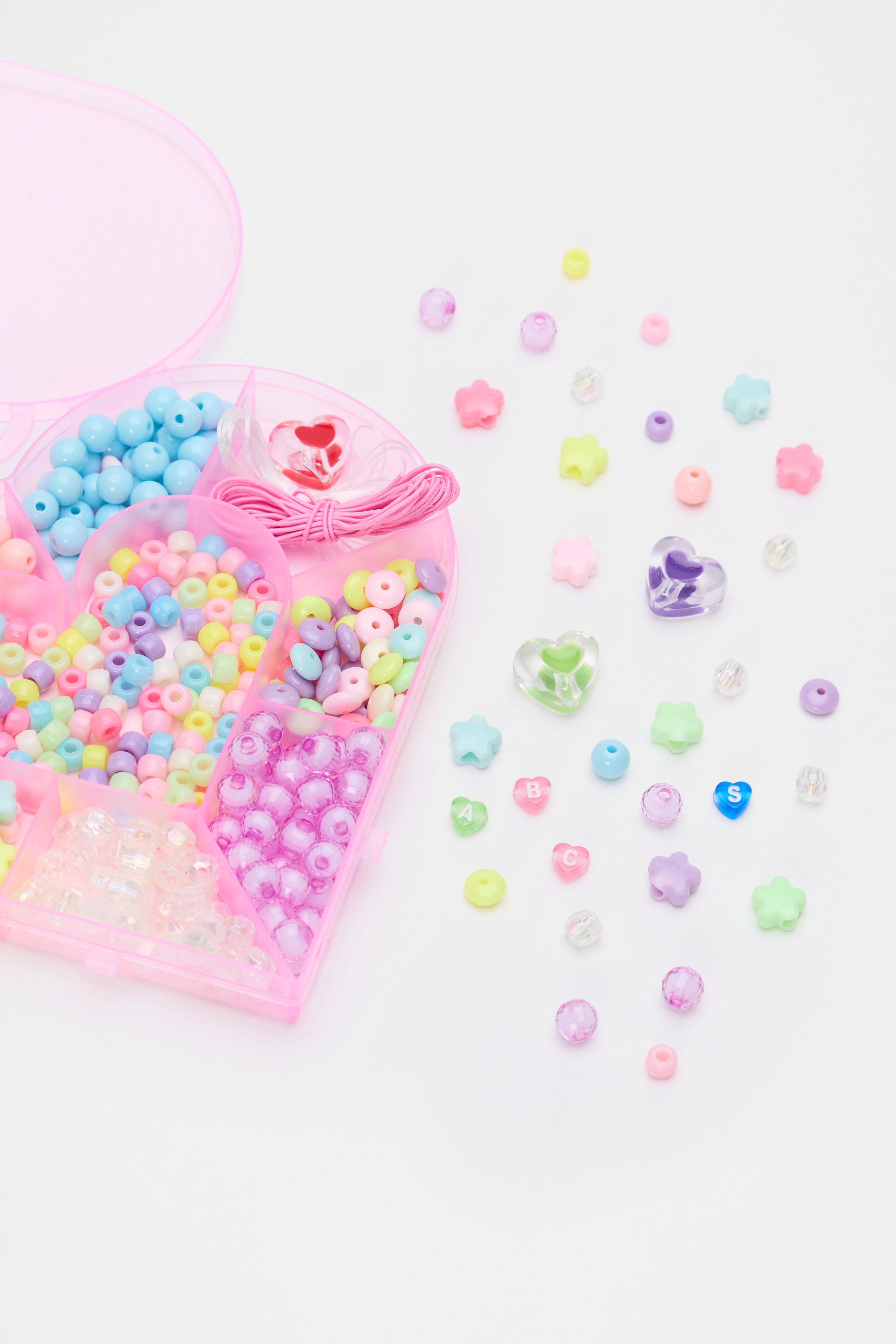 Excite their creativity with this DIY jewellery kit. With this cute heart shaped activity, they can create their own special pieces to treasure. It includes over 130 beads and string to finish their creations. This product is not a toy and is not suitable for children three years and under.