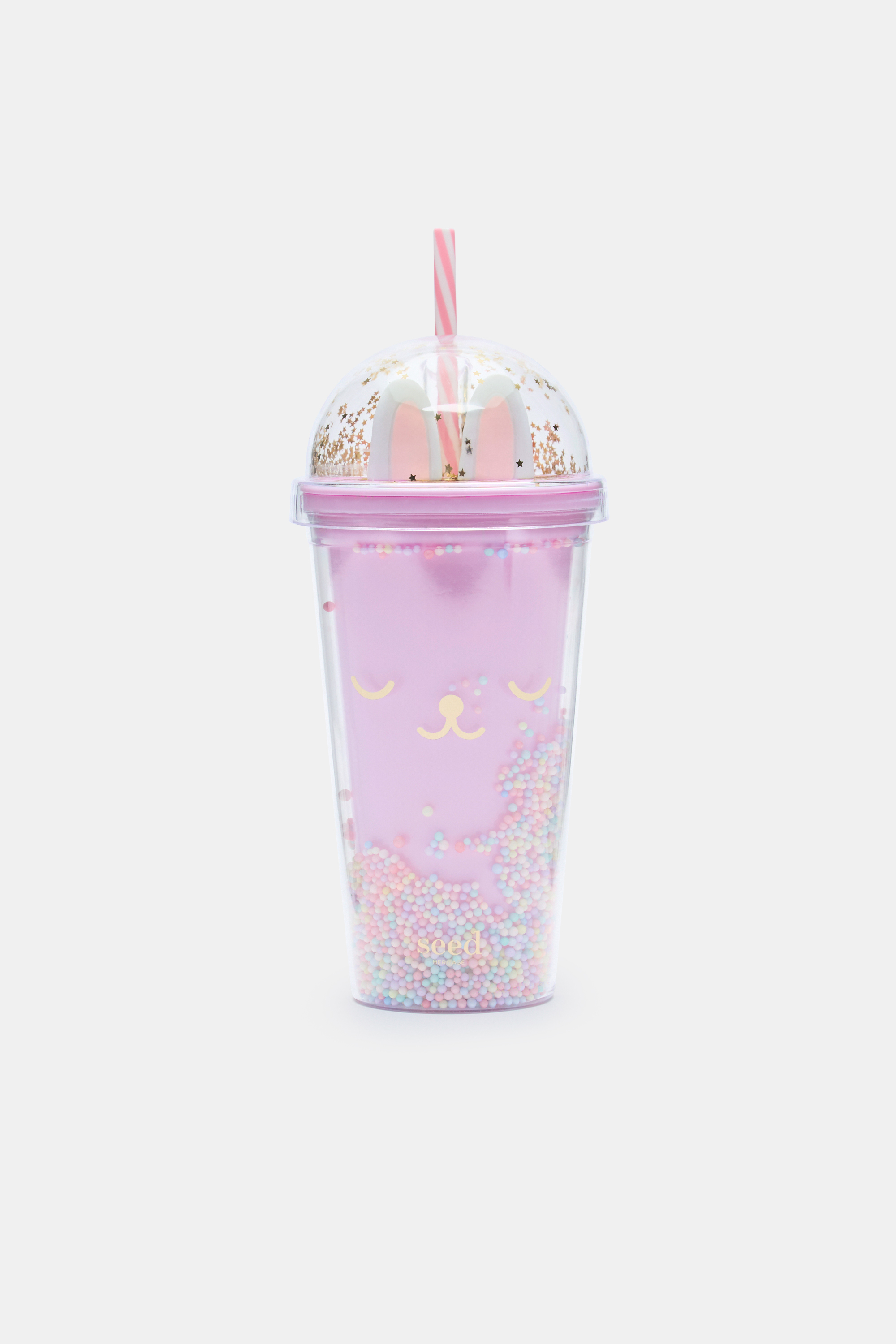 Adding colour and fun to every day, this bunny themed cup makes for the perfect gift. It includes a stripe straw, a screw-top lid and a sweet smiling face. This product is not a toy and is not suitable for children three years and under, potential choking hazard.