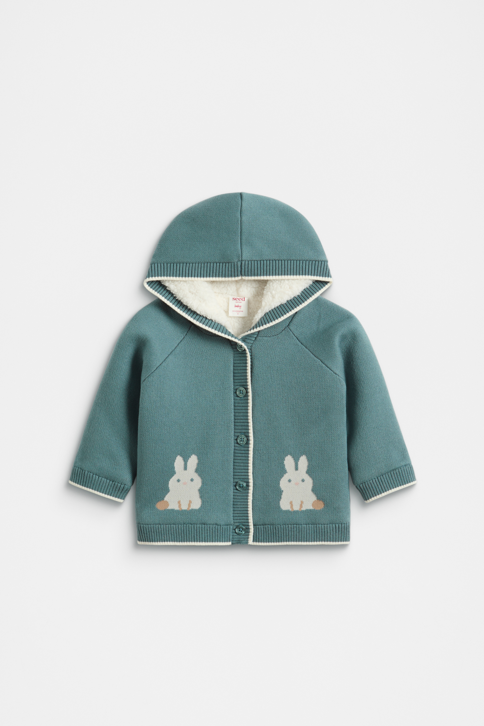 A too-cute design to rug up your little one, this cardigan is lined in a faux fur shearling and features a duo of embroidered chicks. It features a hood, ribbed trims and a button-through front. Pair with the matching pants and beanie for the cosiest head-to-toe ensemble.