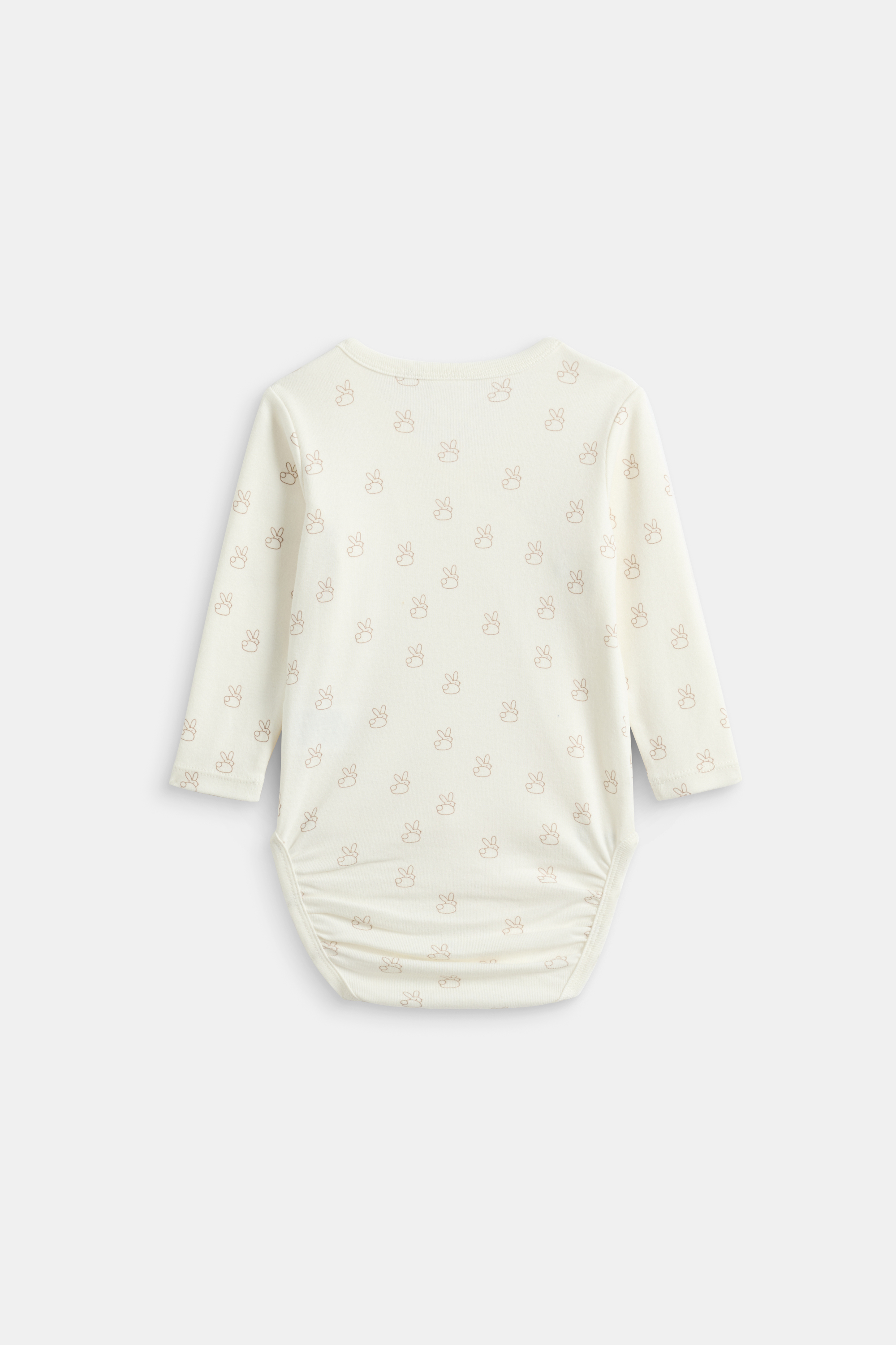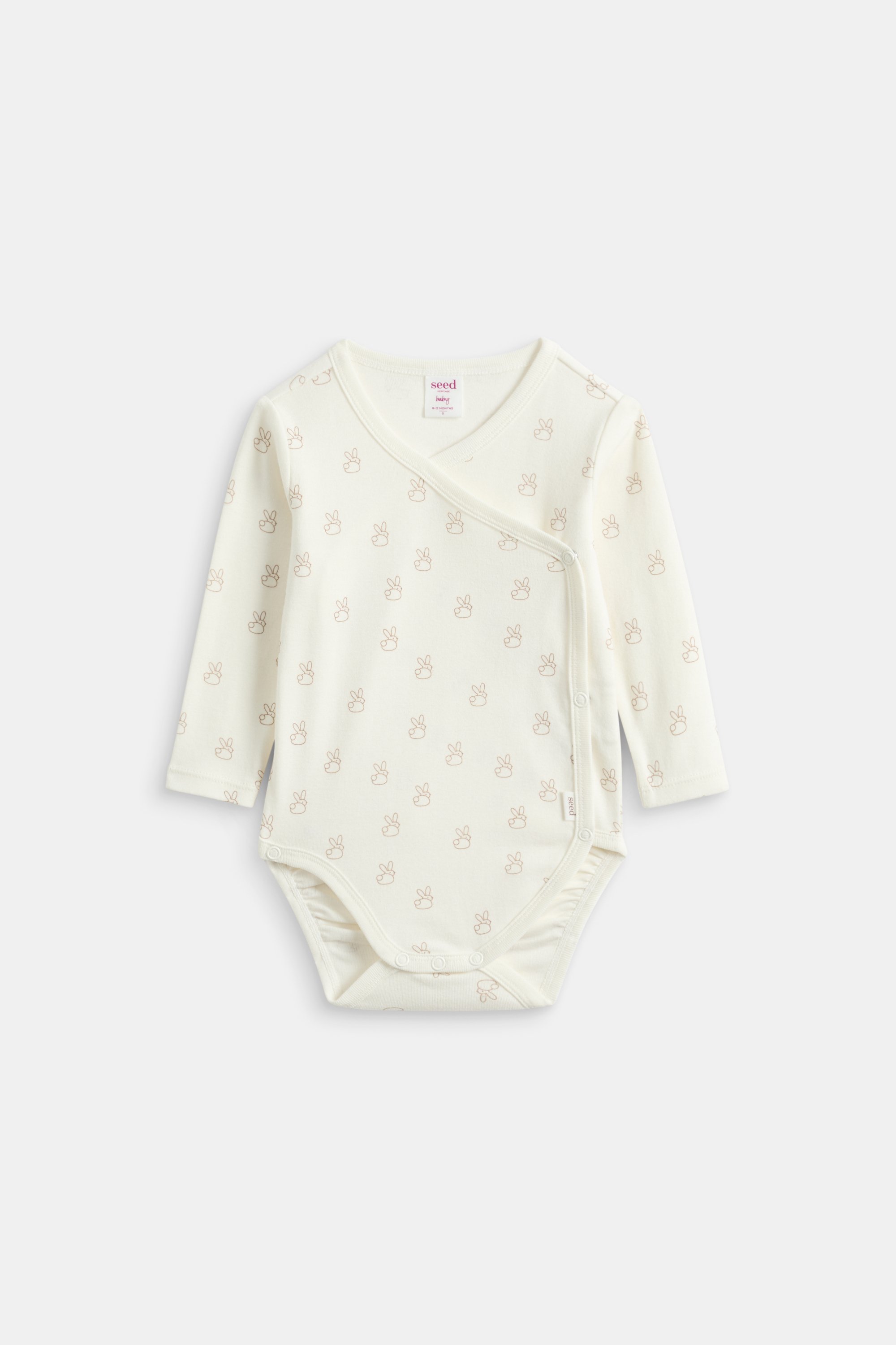 Made from an ultra-soft cotton blend with a rib texture and the perfect amount of stretch, this bodysuit is a must-have for any newborn. It features a crossover wrap design, a soft V neck, short sleeves and a ribbed finish. It fastens with snaps down the side and at the gusset for quick and easy changes.