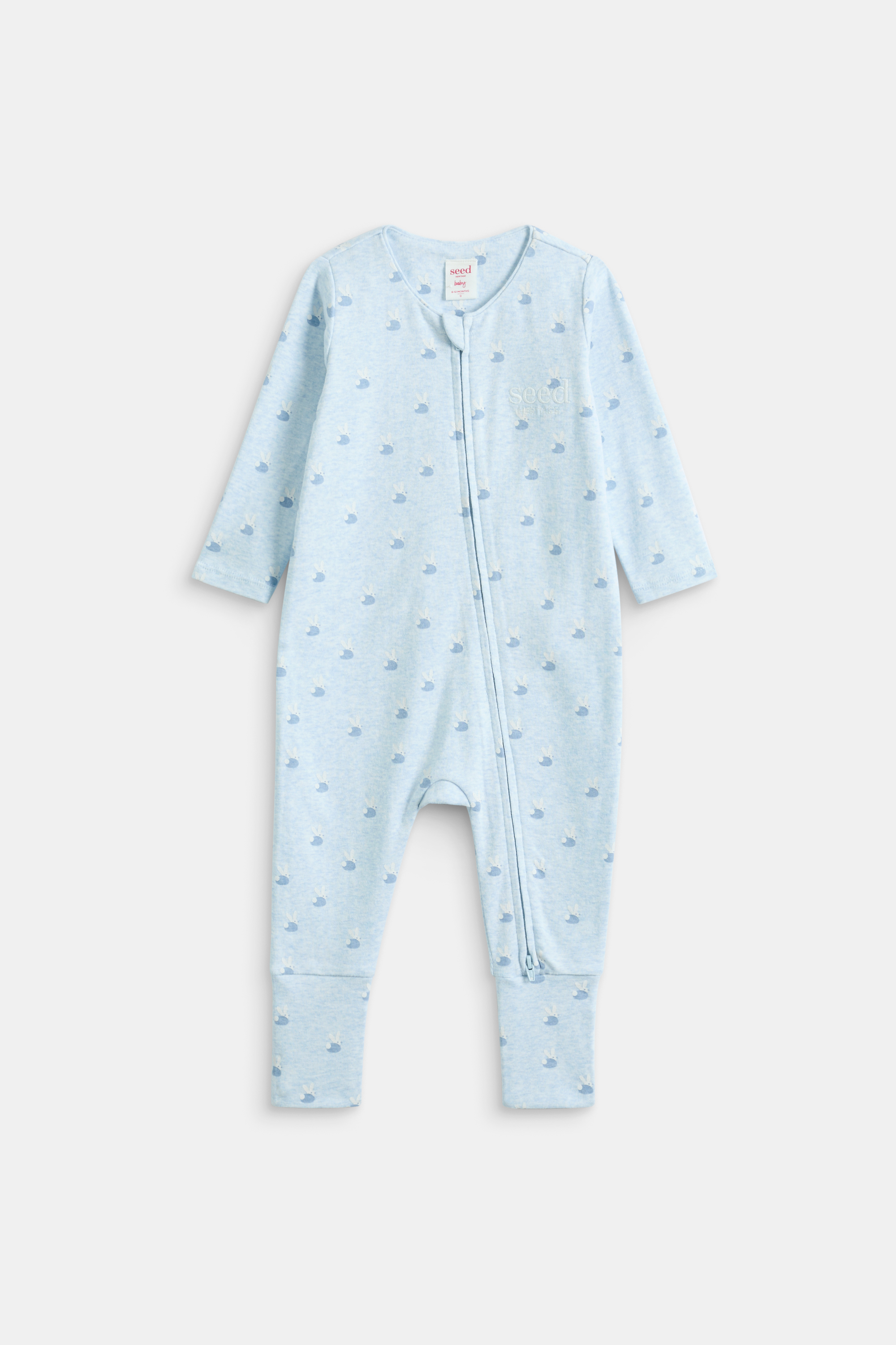 Bunny Logo Zipsuit  Blue Marle  hi-res Bunny Logo Zipsuit  Blue Marle  hi-res