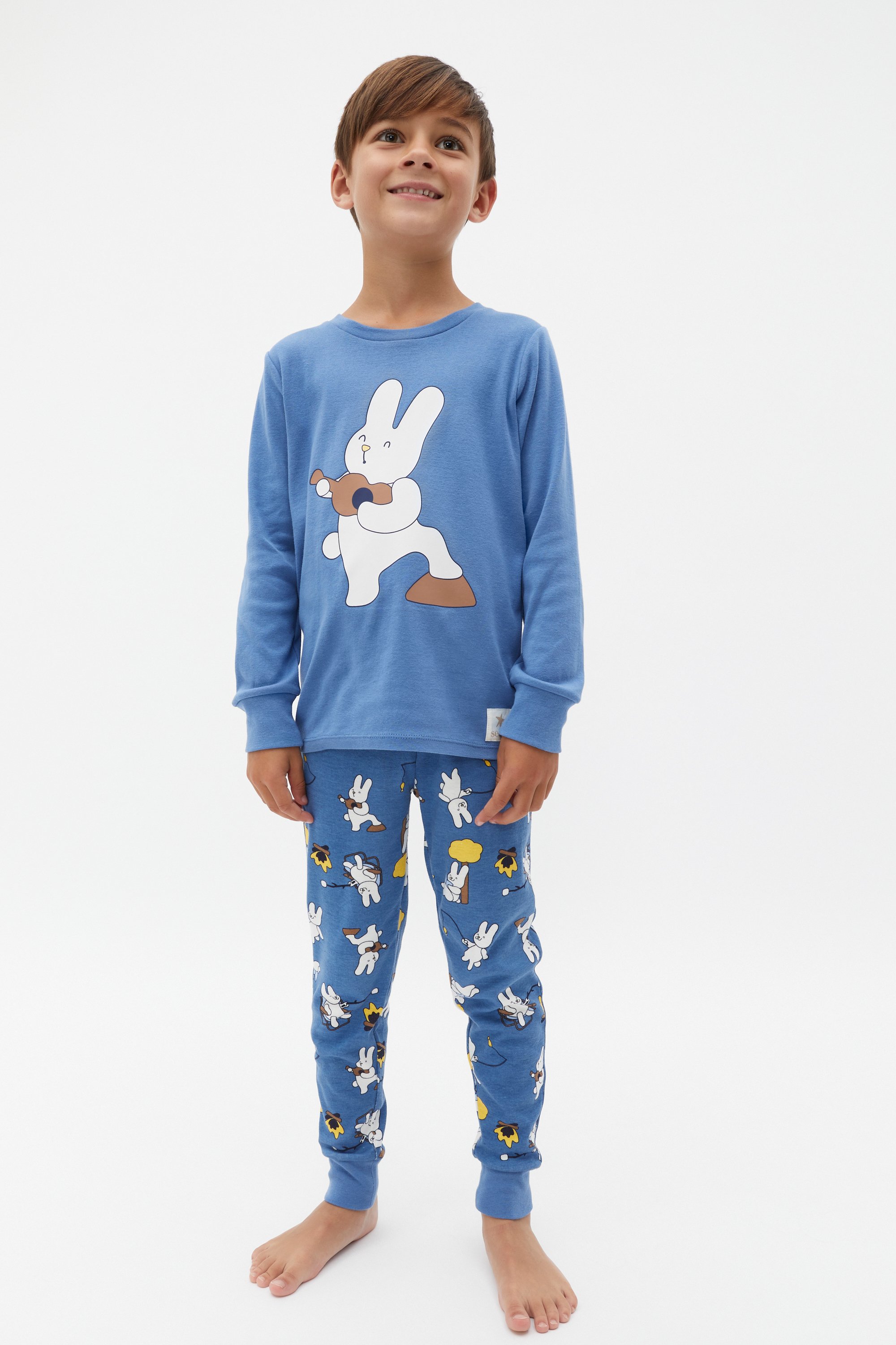 Ready for his next sleepover adventure, this pyjama set is the cutest option and sure to brighten his smile. Crafted in a super-soft cotton for an easy night's sleep, this set features an all-over bunny print. Pair with the matching bunny bag and eye mask for the complete overnight set.