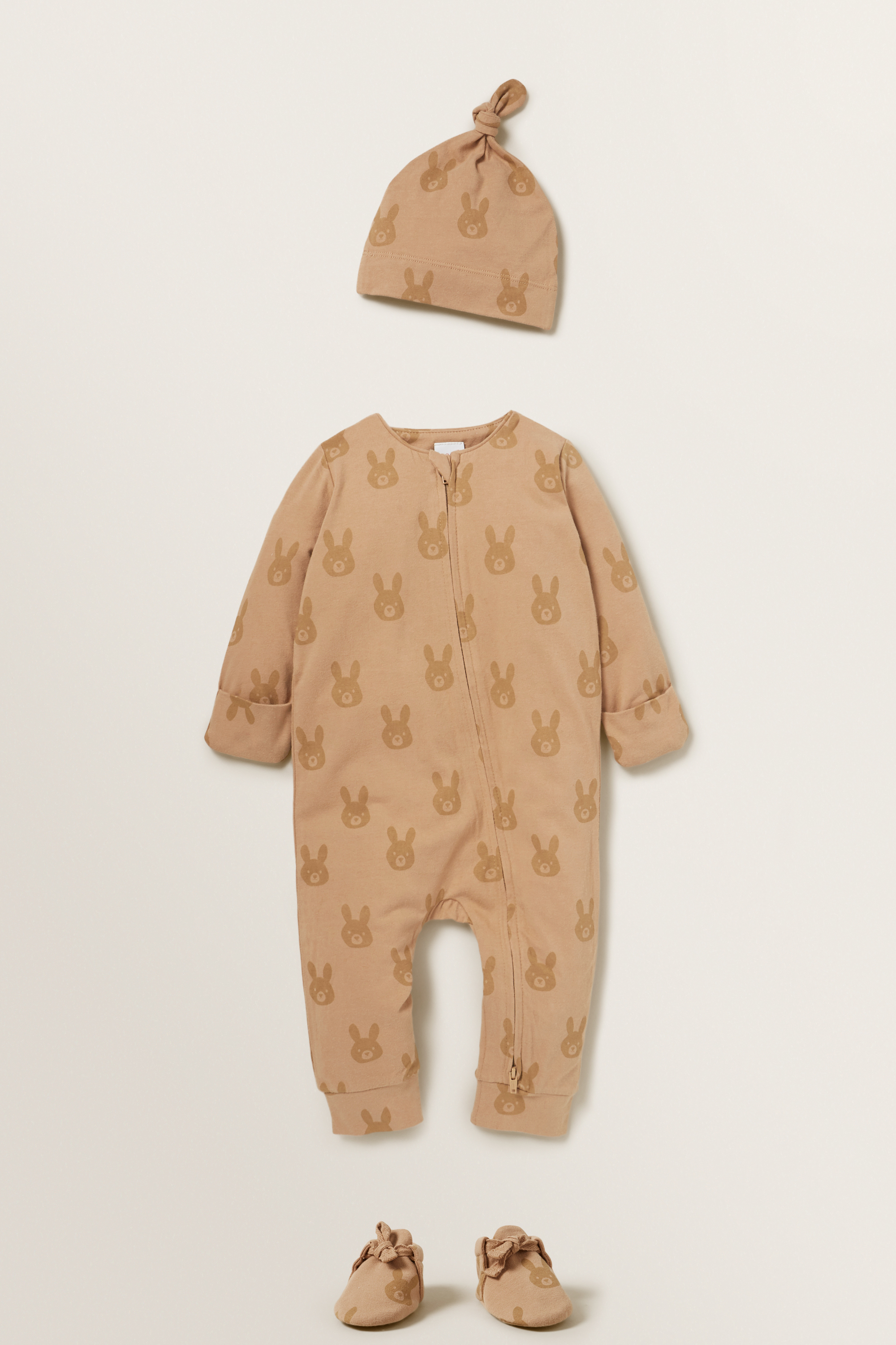 Available in two colourways, this Bunny Zipsuit is made for tiny explorers. Featuring a bunny yardage print, this suit is detailed with a crew neckline, long sleeves, fold-over mittens and a cross-body zip for easy outfit changes. For care instructions, please check the label inside of the garment.