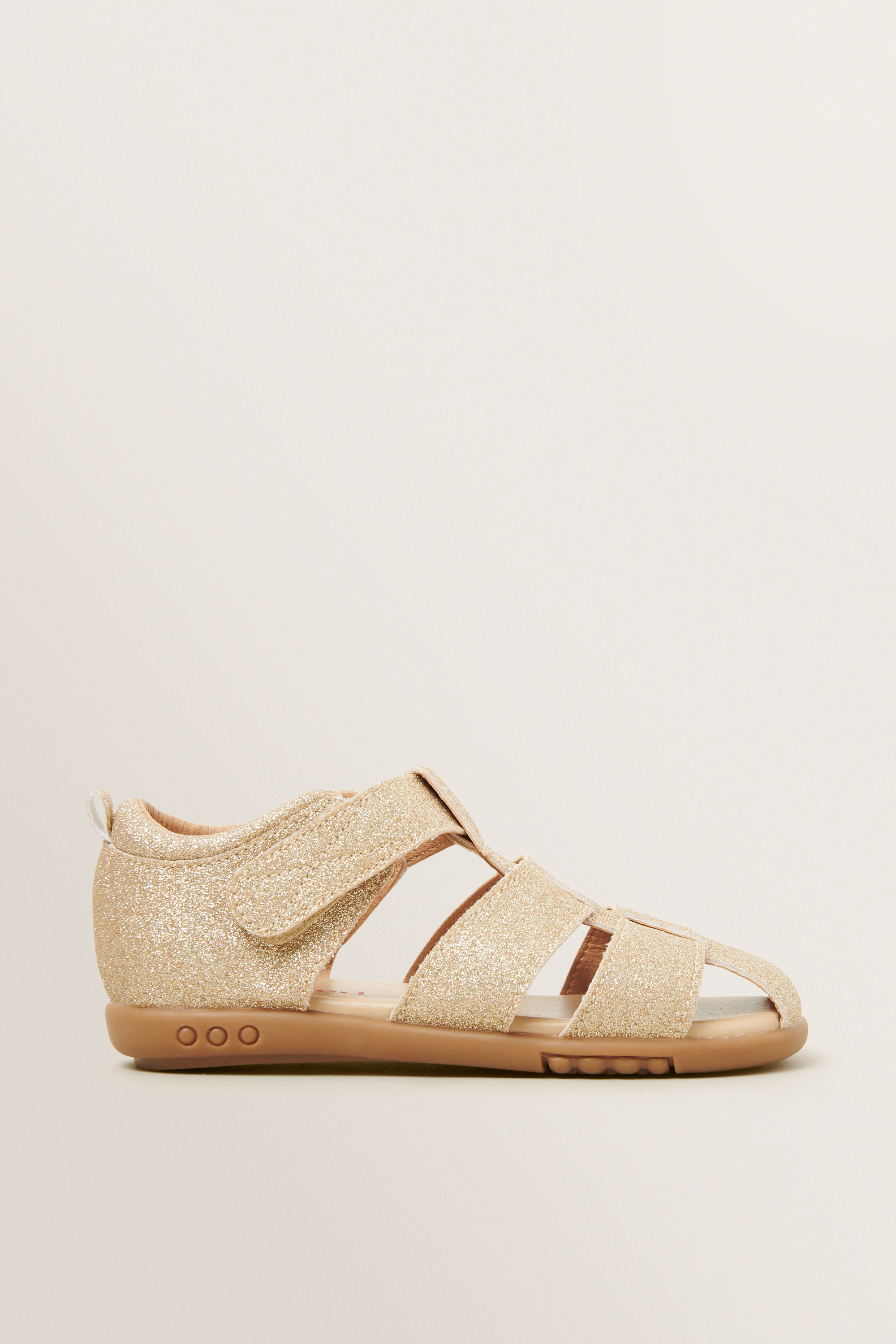 These Caged Sandals are detailed with a round enclosed toe, hook and loop closure, caged strap detailing, and a heel pull-tab for easy wear.