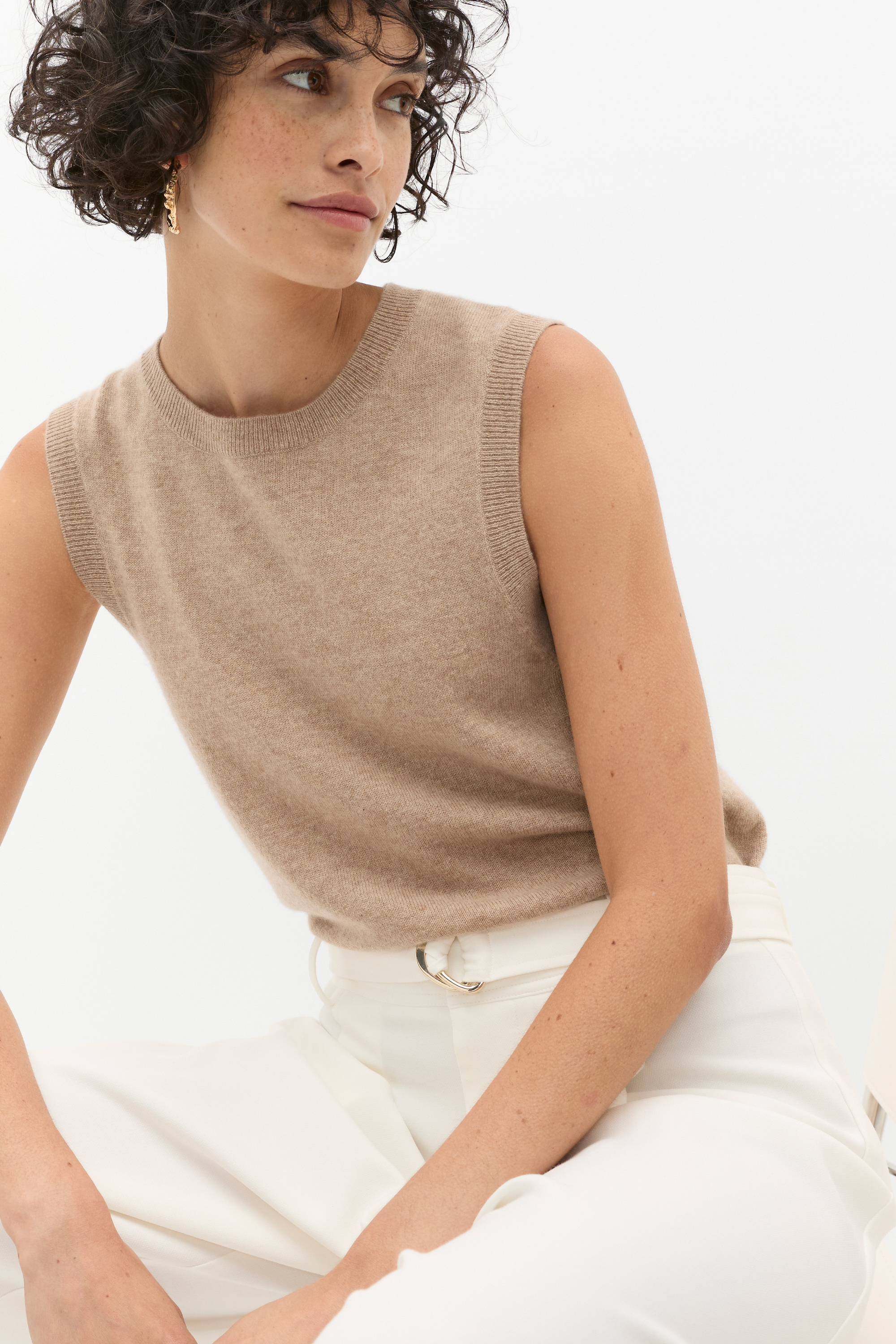 Lightweight and luxurious, this cashmere vest is a wardrobe must-have for your transeasonal styling. It's a sleeveless design and features a round neck with ribbed trims. It has a relaxed fit and an ultra-soft finish for comfort and wearability.