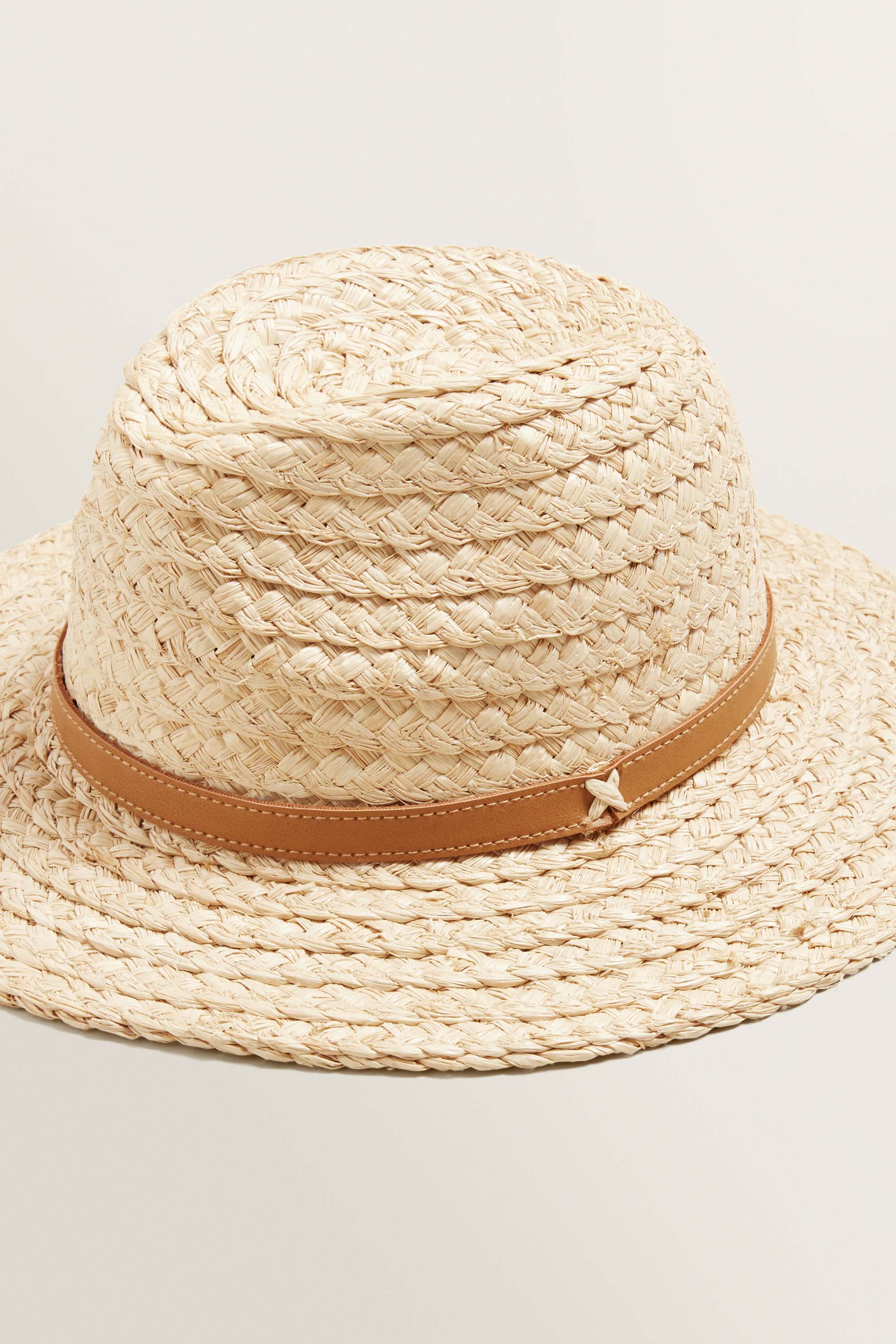 Structured and sleek, this Casual Panama is sure to elevate your off-duty look. Crafted from a raffia fabrication, this Panama detailed with a tanned band around it's base for added interest. For care instructions, please refer to the care label inside of the garment.