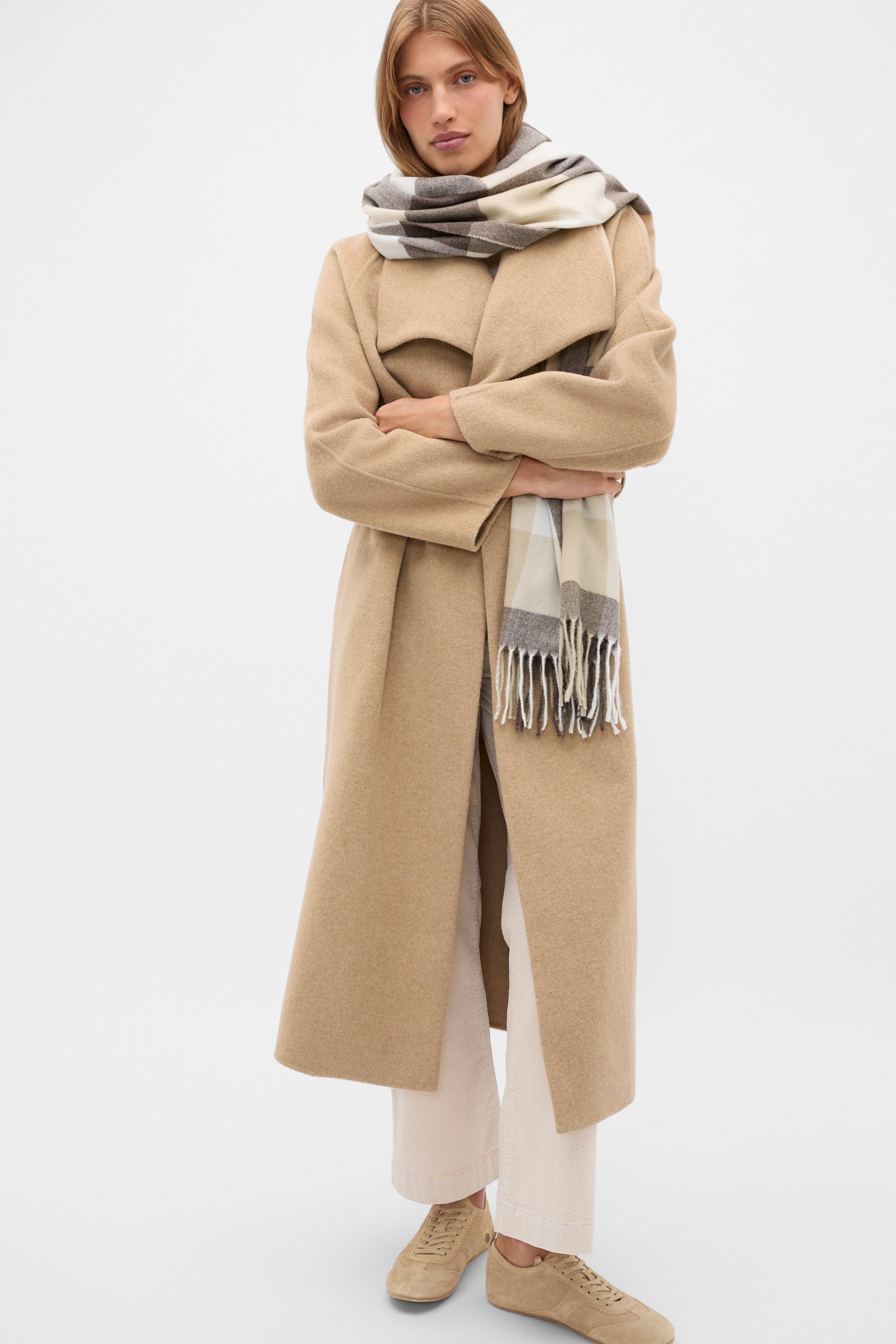 Complete your winter-wardrobe update with this scarf, finished in a timeless check design. Crafted in an ultra-soft blend, it features a thin tassel detail along the edge.