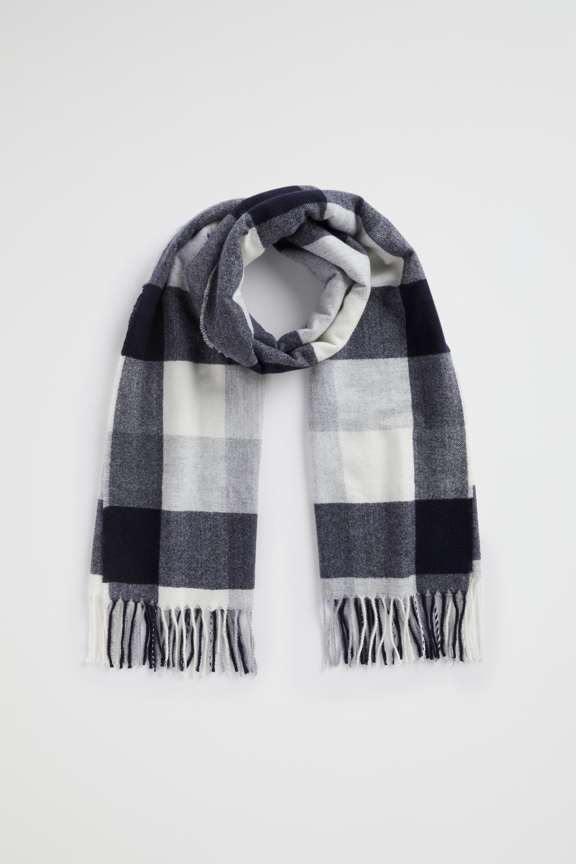 Generously sized and in a midweight blended fabric, this scarf is the ideal finishing touch for your autumn-winter looks. It features a colourblock design in new-season colours, and is finished with a tassel trim.