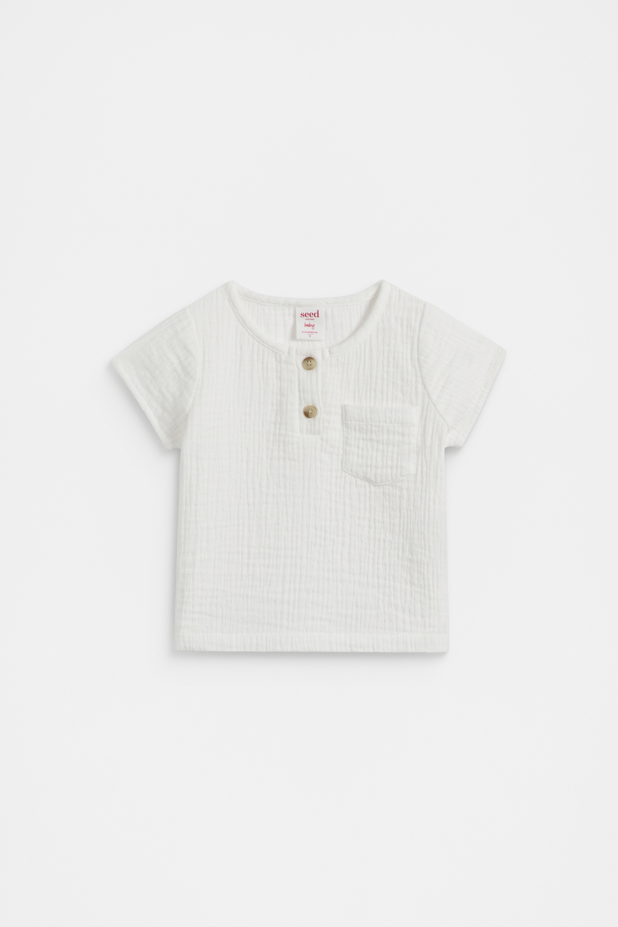 In a classic cheesecloth texture and crafted from cotton, this tee is a staple for your little one's wardrobe. It has a Henley neckline, short sleeves, and a patch pocket at the chest. It can be paired with the matching pants for a cute set.