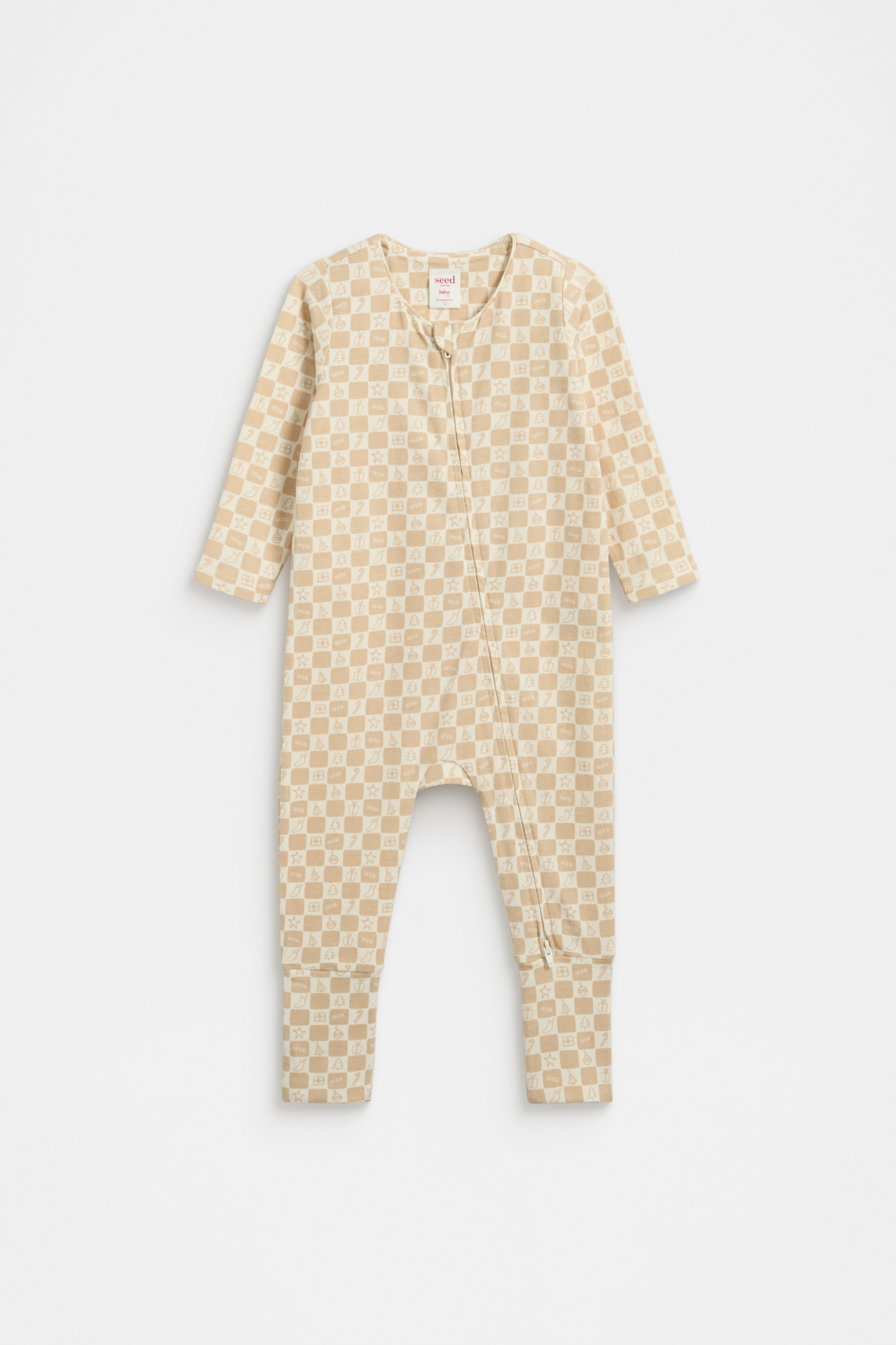 Adorably festive, this little zip suit is crafted in premium cotton for a comfortable holiday season. It features a round neck design, long sleeves, convertible feet, a playful Christmas design with stars, gifts and plenty of stretch for easy changes.
