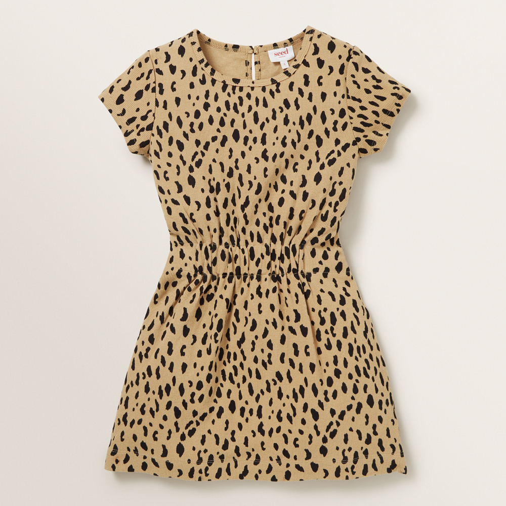 Available in two colourways, this Clinched Waist Dress is the perfect throw-over for warm summer days. Featuring a crew neckline, it is detailed with short sleeves, clinched waist detail and loose fitting sihouette. Wear it with Seed swimwear and jellies to complete the look. Crafted from a 100% Cotton jersey, this dress is available in sizes 2 to 10. For care instructions, check the label inside of the garment.