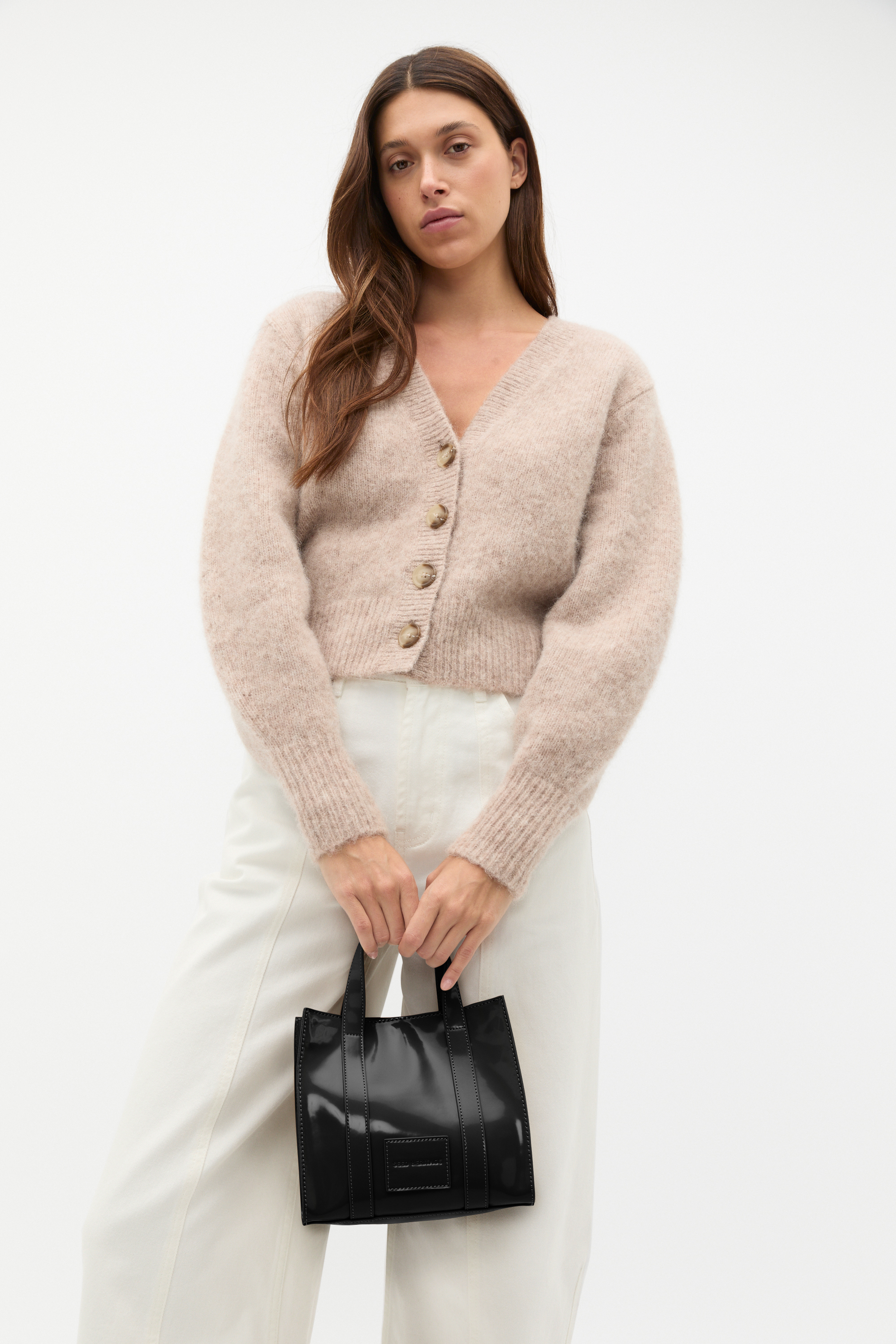A miniature take on a classic design, this tote bag has a high shine finish for a luxurious look. It features short carry handles as well as a detachable crossbody strap. It's a fully lined styled and features an internal zip pocket and a Seed Heritage logo.