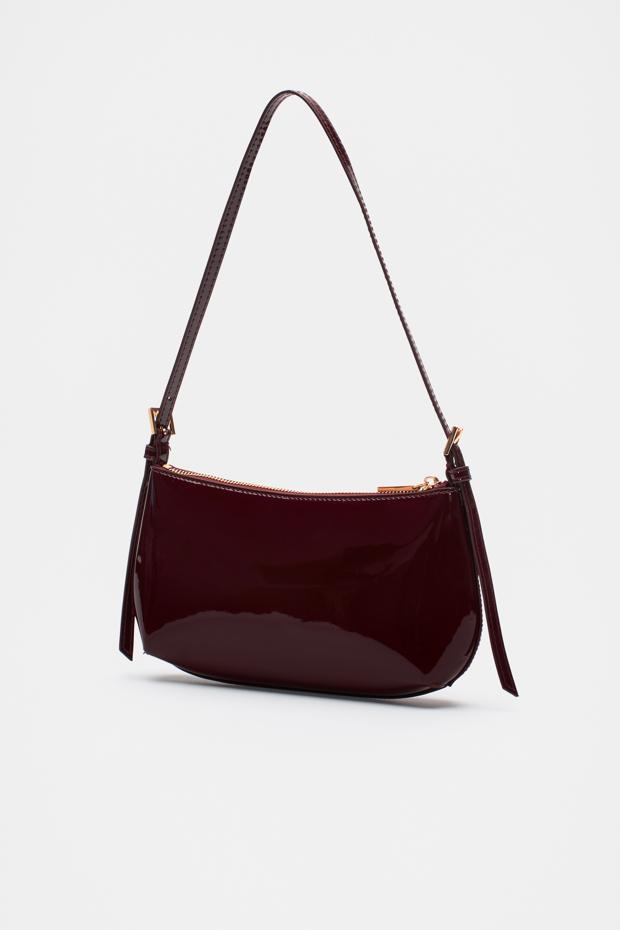 A sophisticated and chic design, this bag is finished with a high shine patent leather-look. It features an adjustable shoulder strap and an internal zip pocket.