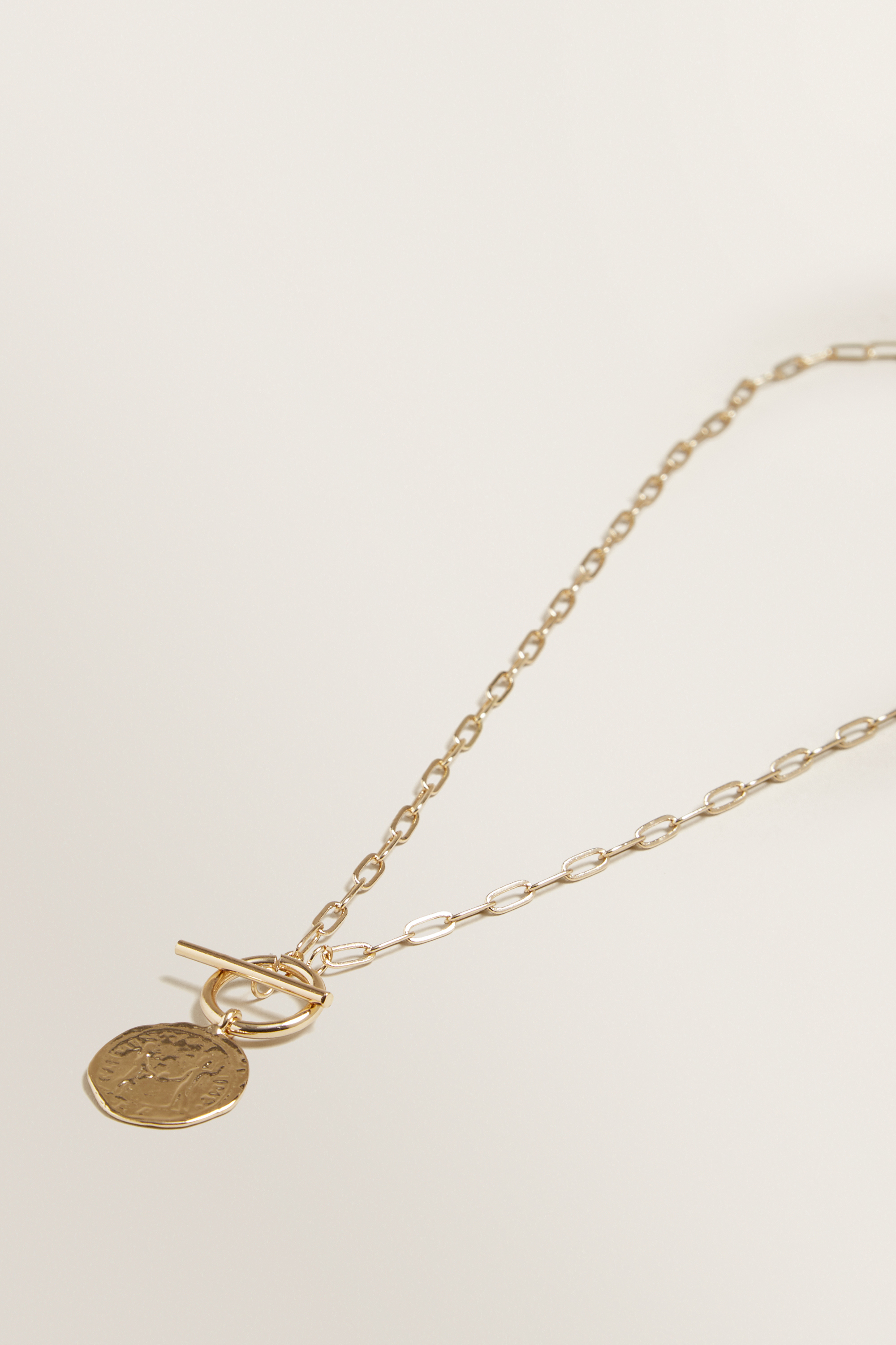 Hallmarked by it's vintage aesthetic, this Coin Pendant Necklace features a bold linked chain, clasp closure and stamped pendant.