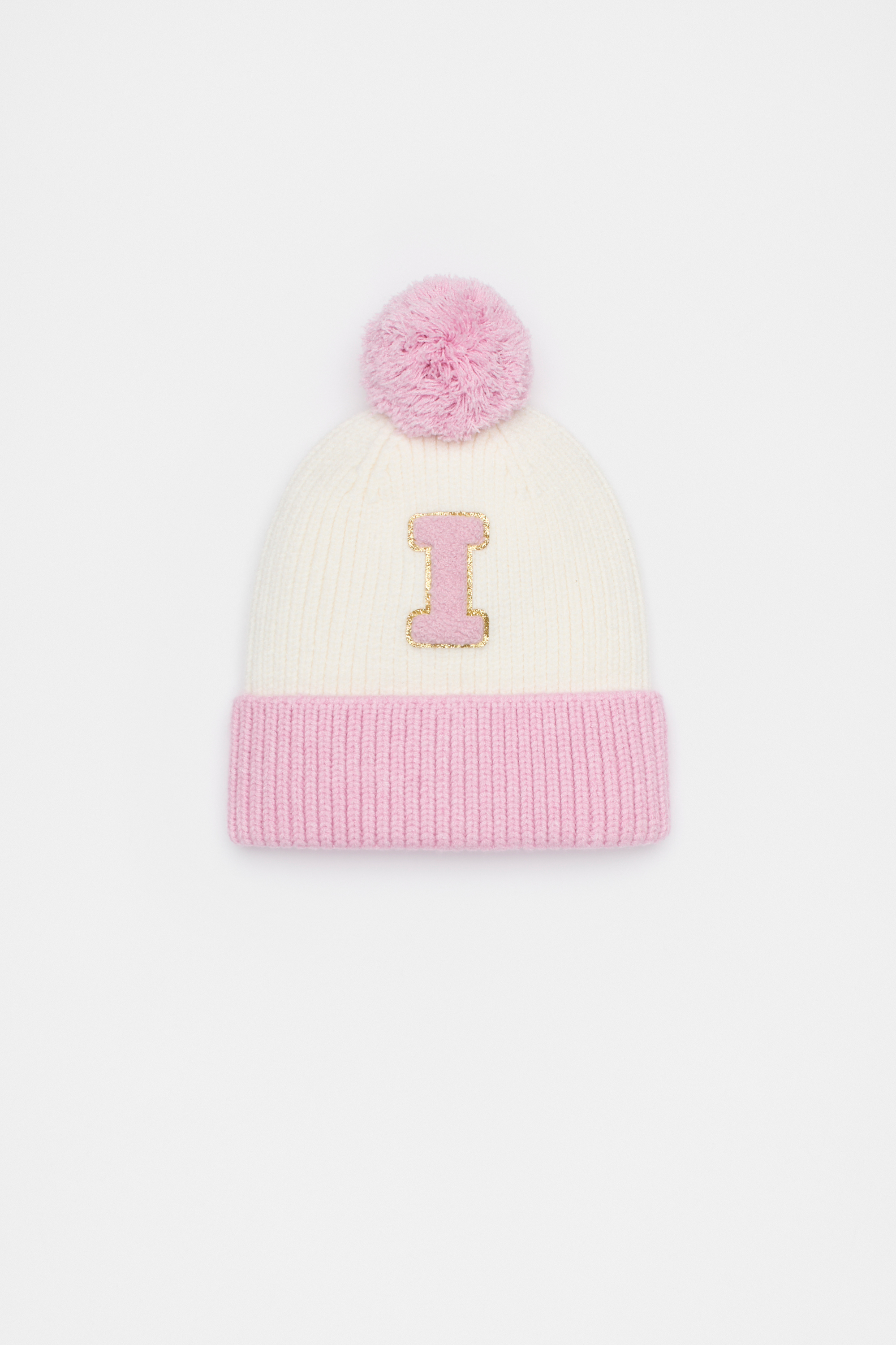 This adorable beanie has a ribbed hem for a comfortable fit. Featuring a cute pom pom, the contrast initial motif finished in gold glitter adds a personalised touch.