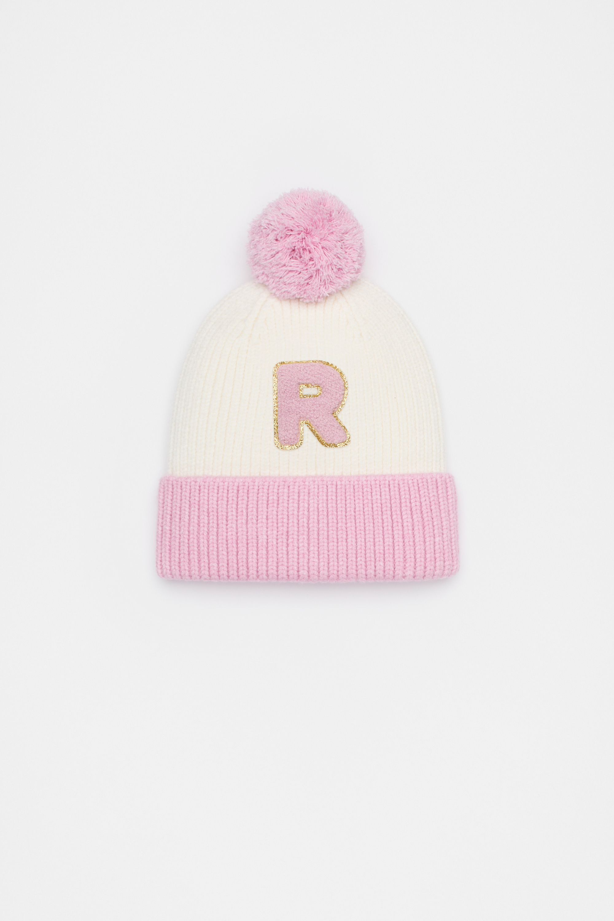 This adorable beanie has a ribbed hem for a comfortable fit. Featuring a cute pom pom, the contrast initial motif finished in gold glitter adds a personalised touch.