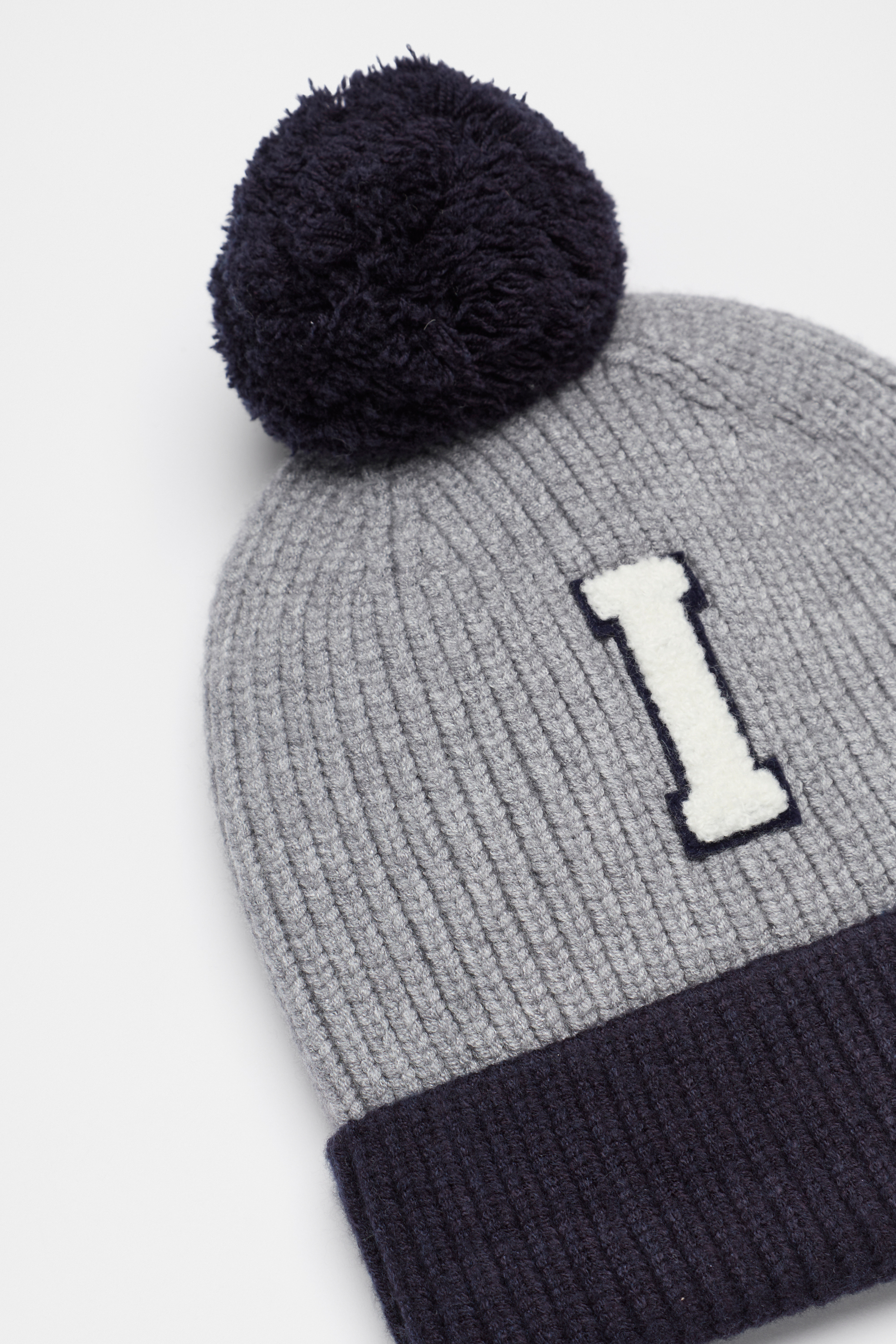 A cool and on-trend style, this colourblock beanie features a pom pom and a chenille initial patch.