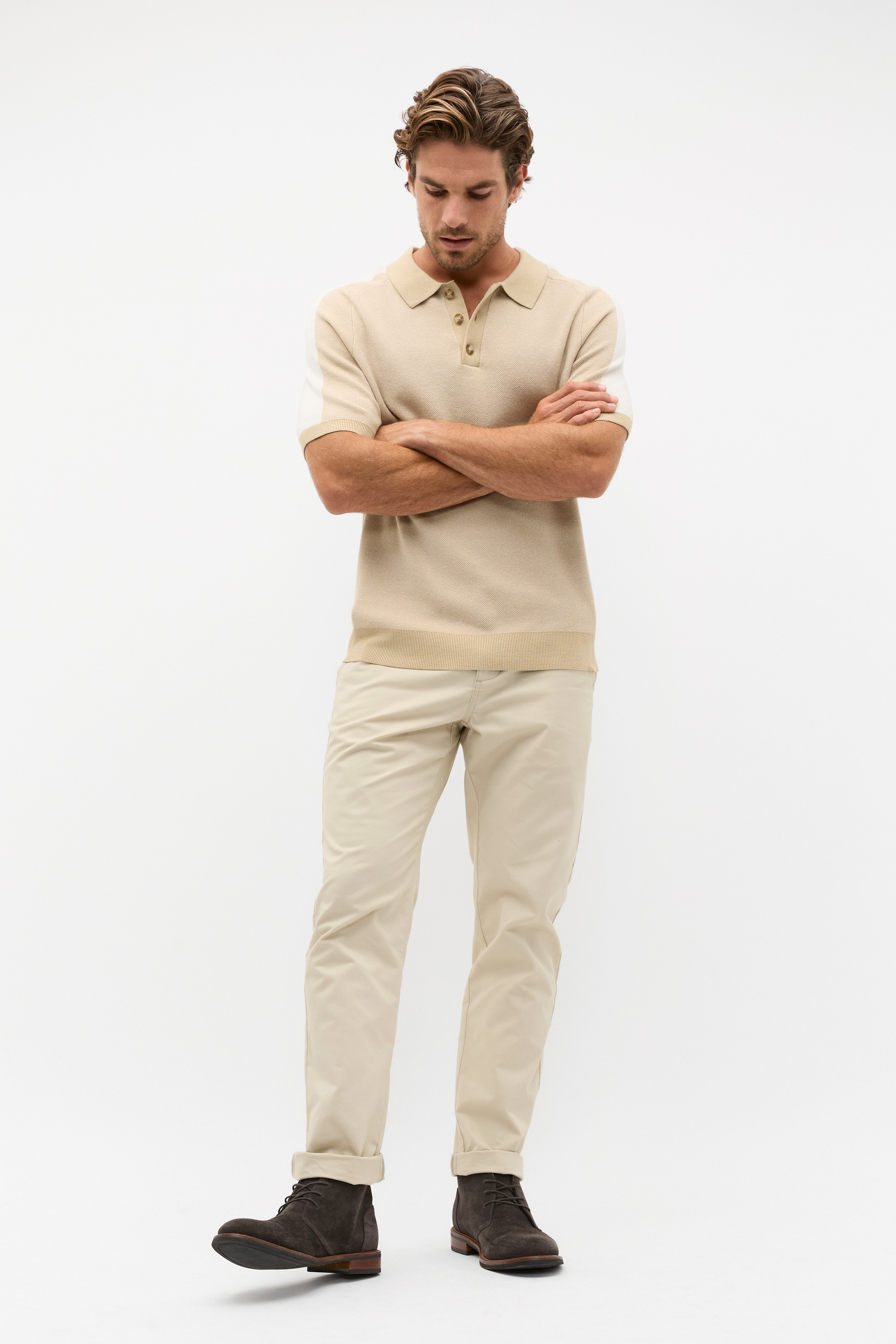 An everyday essential, this polo has a colourblock design for an on-trend look. Crafted in a medium-weight cotton blend with a knit finish, it features a button-up polo collar, short sleeves and a relaxed fit. Easy to dress up or down, this polo is perfect to slot into his transeasonal wardrobe.
