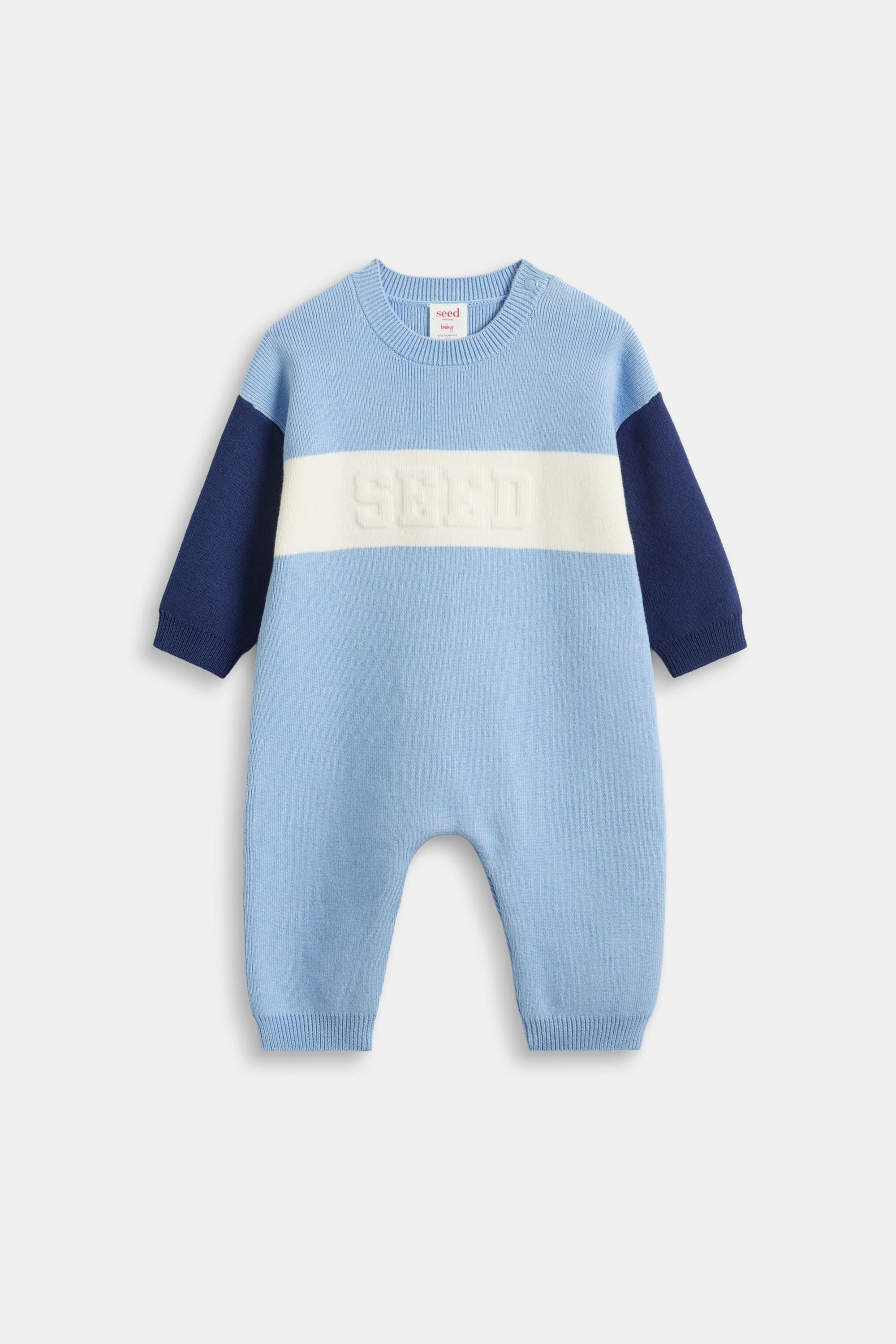 With a bold colourblock finish, this knit romper adds extra style to their everyday.