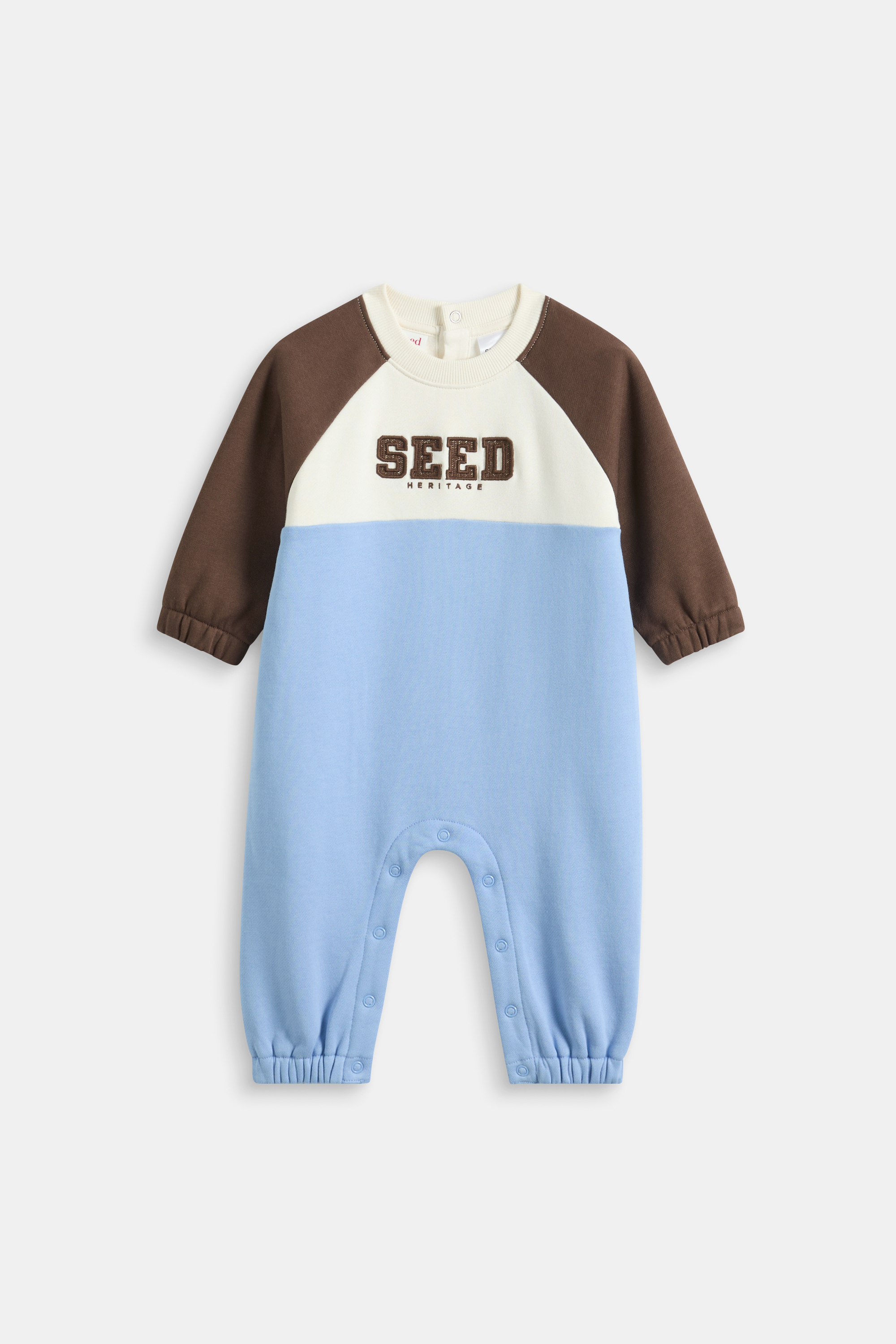 So cosy and sweet, this romper is perfect for the cool change. It's finished in a colourblock design with an embroidered Seed Heritage logo and features a round neck, long sleeves with elasticated cuffs - ensuring a cosy fit - and snaps at the gusset for quick and easy changes.