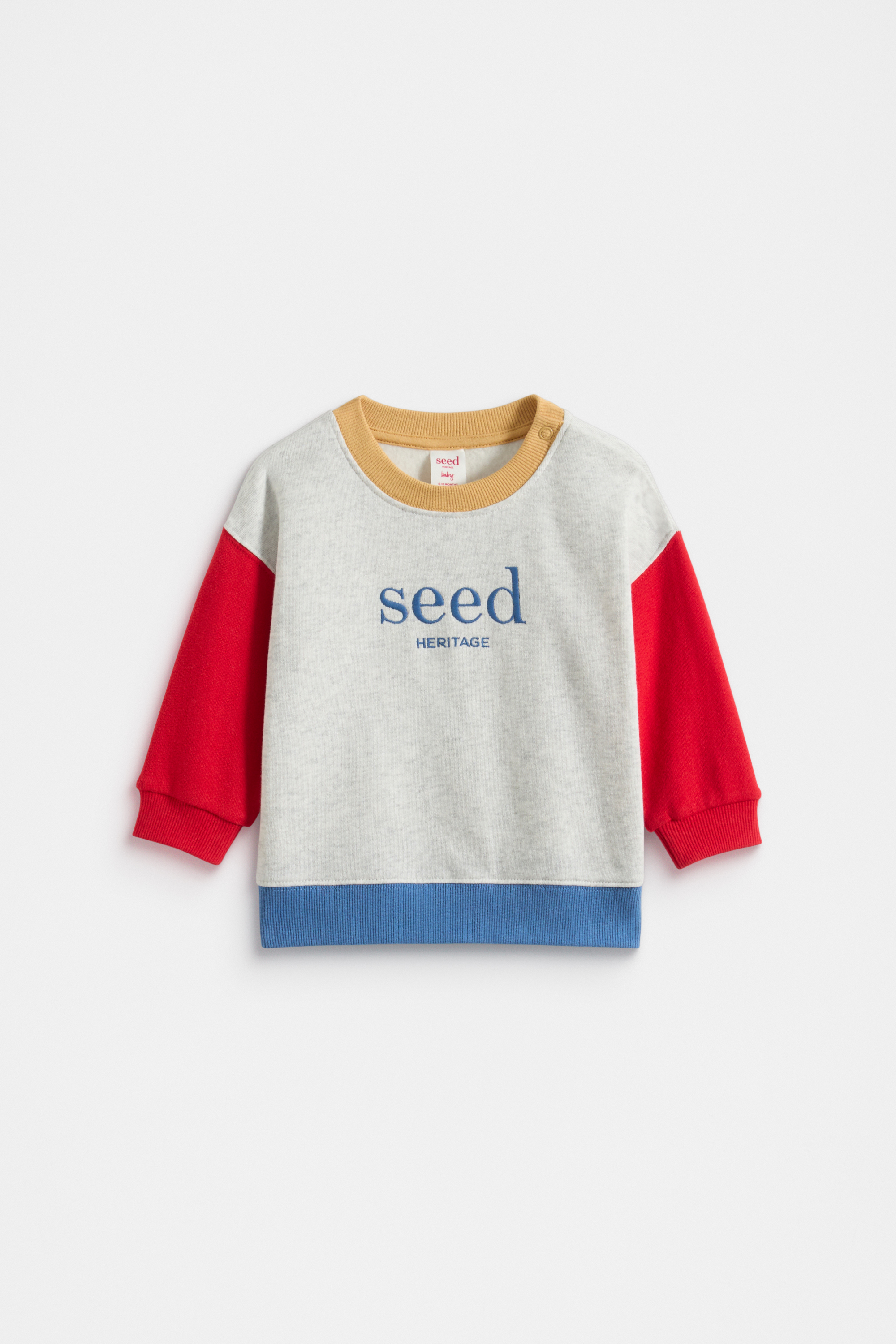 So soft and cosy, this sweater is the perfect basic to build out his little wardrobe, and makes for a great gift. It features a crew neck, long sleeves, an embroidered Seed Heritage logo and is finished in a classic colourblock design. It's crafted in premium cotton for a comfortable fit and has shoulder snaps for quick and easy changes.