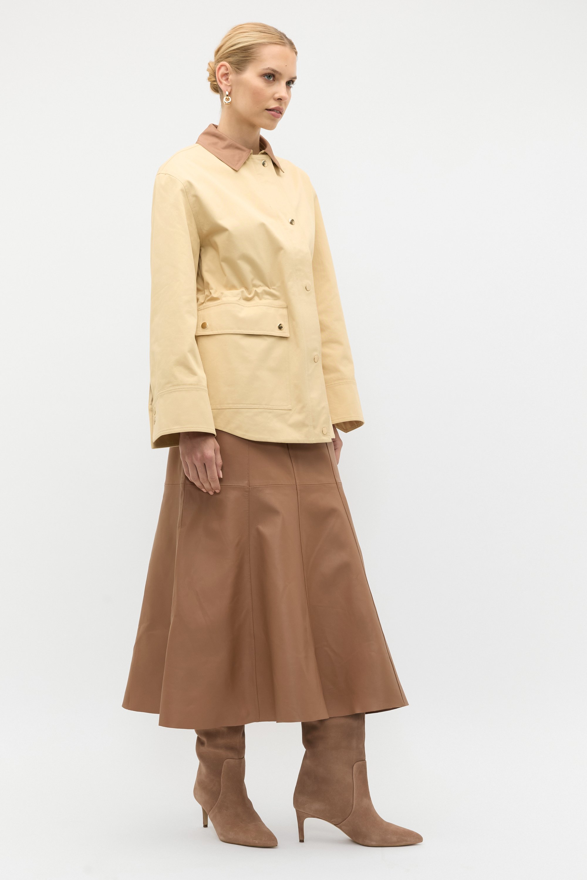 This classic barn-style jacket is a winter essential for the contemporary wardrobe. Crafted in premium cotton with a soft, subtly textured finish, it features a contrast collar, a zip front with a button placket, front pockets and is finished with gold hardware details. It's fully lined for your everyday comfort and easy wear.