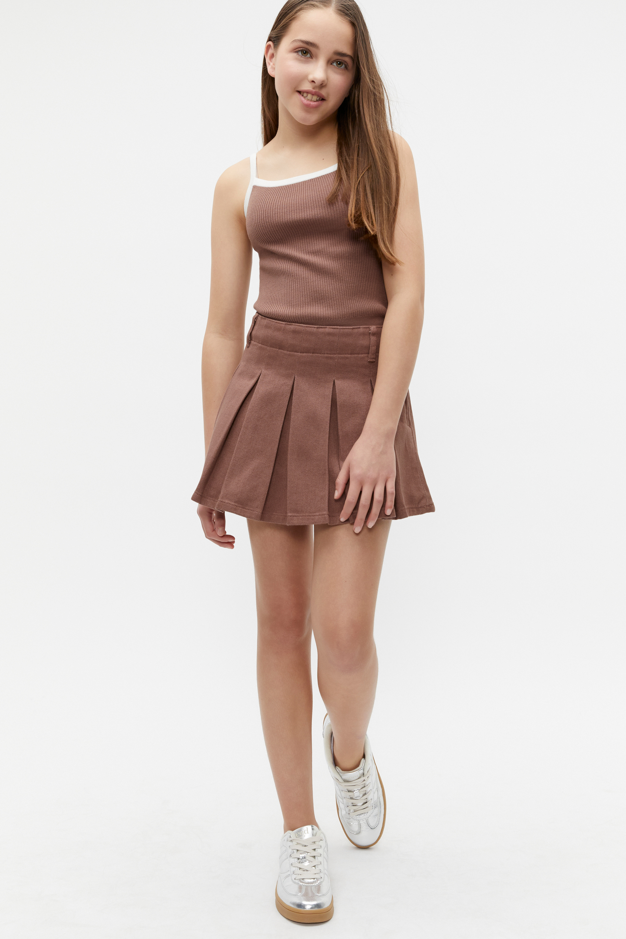 Easy to wear and crafted from a comfortable rib fabric, this knit tank features narrow straps, a straight neckline, and contrasting trim details. It's an all-over neat fit.