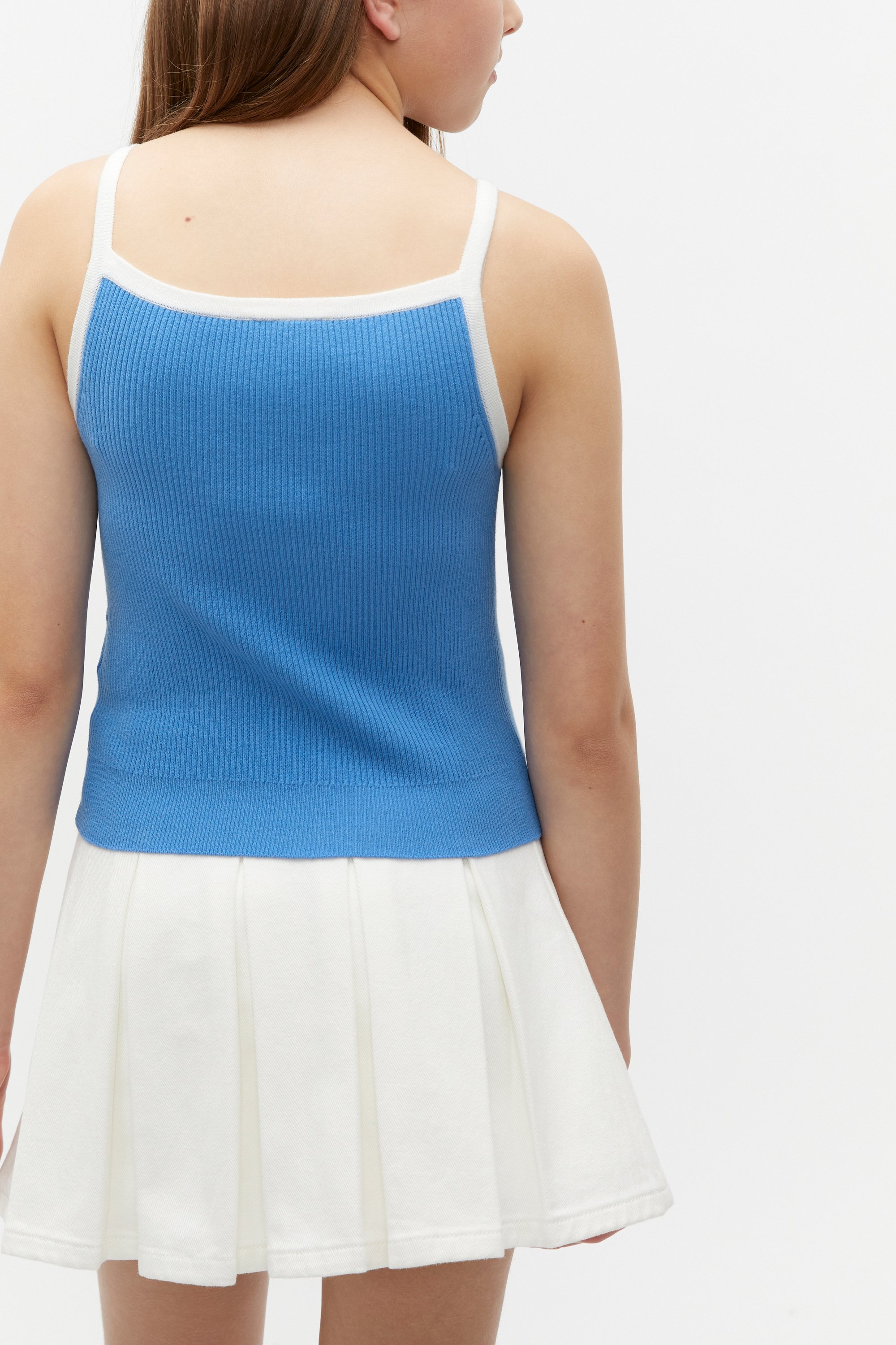 Easy to wear and crafted from a comfortable rib fabric, this knit tank features narrow straps, a straight neckline, and contrasting trim details. It's an all-over neat fit.