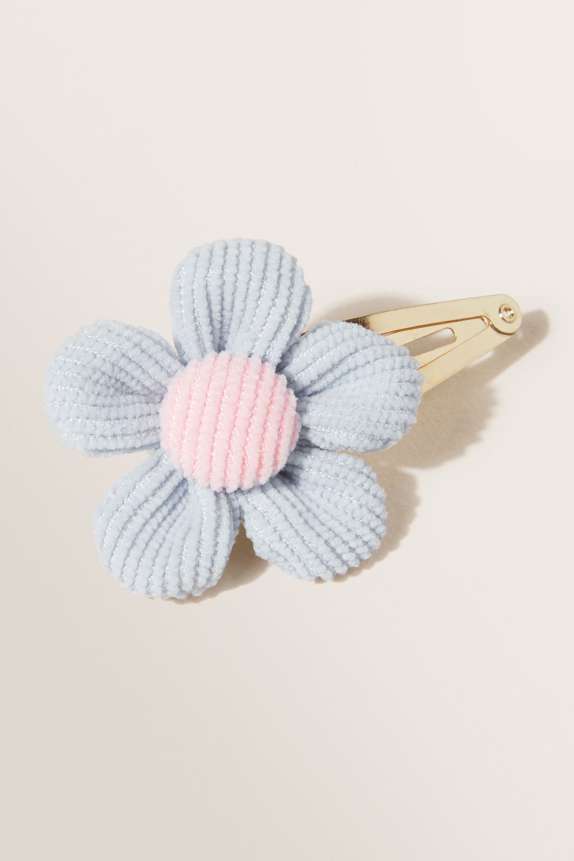 Made from soft corduroy in the shape of gentle flower, this clip will add a hint of sunshine to any look. The flower has a contrast centre and is mounted on a shiny snap clip. This product is not a toy and is not suitable for children 3 years and under.
