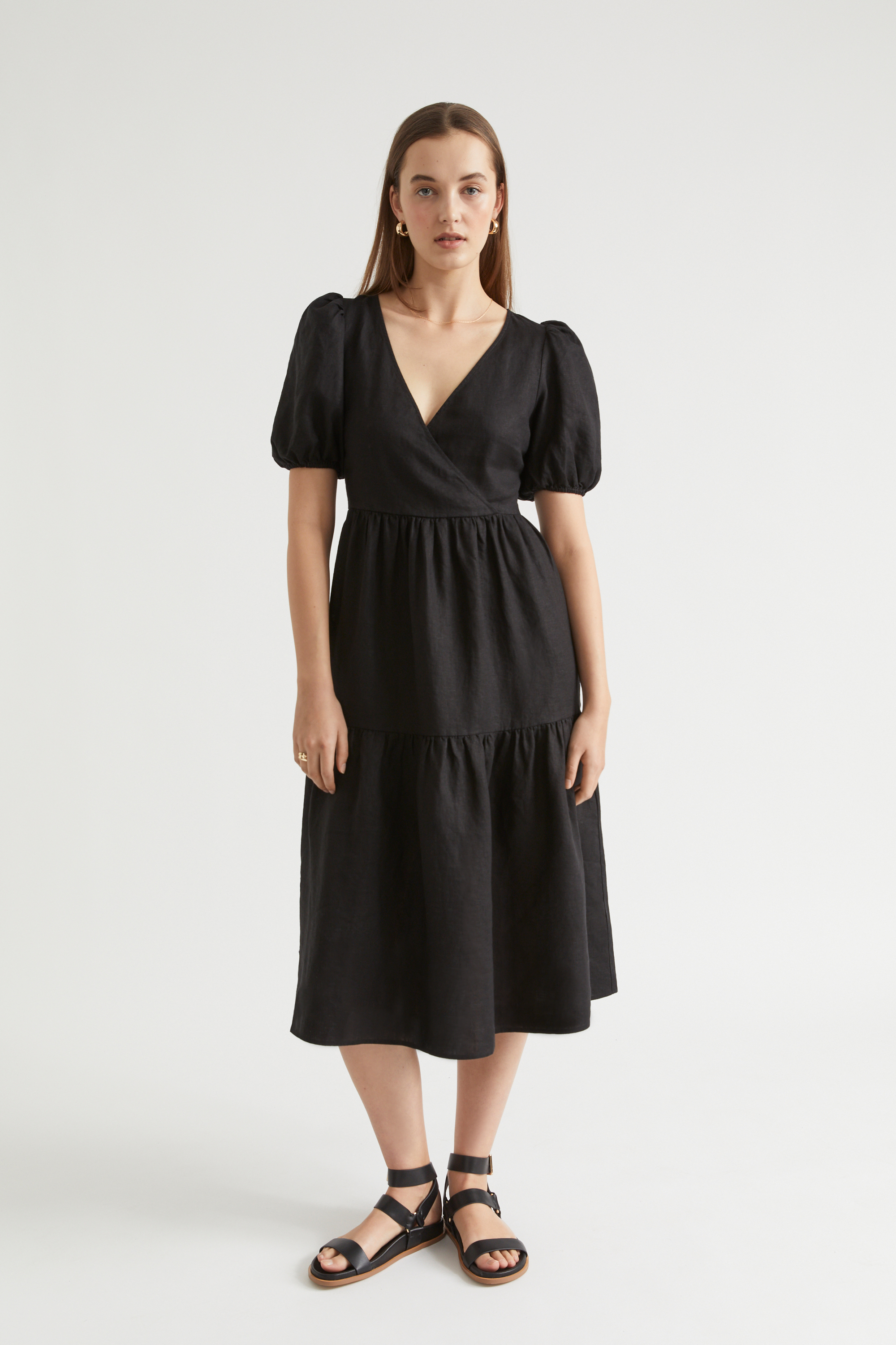 Core Linen Cross Front Midi Dress  Black  hi-res Core Linen Cross Front Midi Dress  Black  hi-res Core Linen Cross Front Midi Dress  Black  hi-res Core Linen Cross Front Midi Dress  Black  hi-res